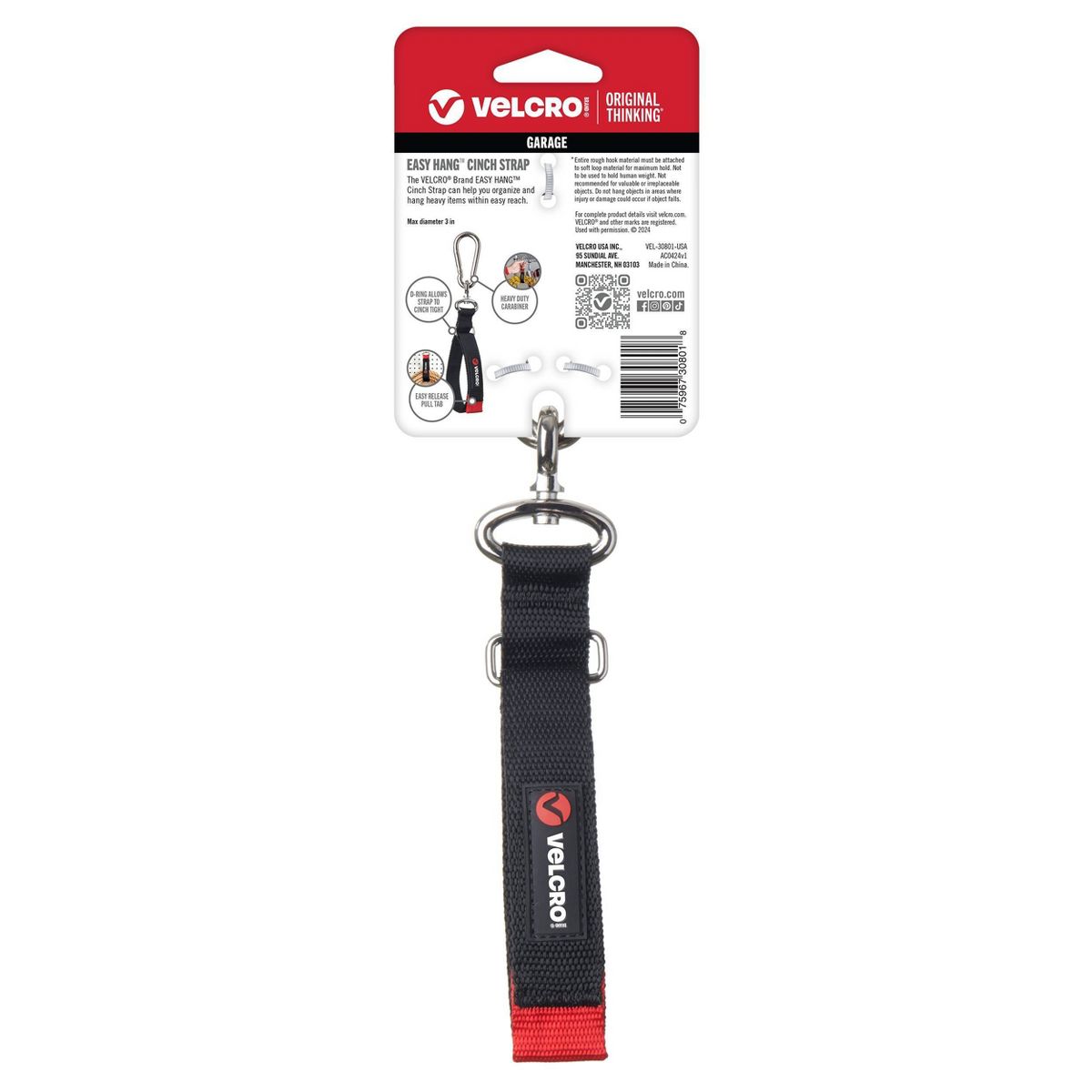 VELCRO Brand EASY HANG Garage Storage Straps with cinch strap feature, easy release pull tab and carabiner hook are the perfect garage organization tools. Garage storage solution for maximizing space, heavy duty straps are perfect for garage organization, hose storage, extension cord storage, garage hooks, camper accessories, garden hose holder, air compressor accessories, hang a bucket tool organizer and much more. Hanging straps with hooks are made from tough, durable and strong VELCRO Brand cinch straps heavy duty with gripping hook and loop nylon material combined with the highest quality grade carabiner hook; unique and useful gadgets for men or women who enjoy do it yourself DIY projects. Also useful for camping, backpacking gear and outdoor activities which require hanging straps or securing items. EASY HANG heavy duty storage straps are weather resistant, and suitable for outdoor storage solutions, shed accessories, garden tool organizer, ladder storage and more, use VELCRO brand reusable heavy duty adjustable straps with zinc hooks for indoor or outdoor applications