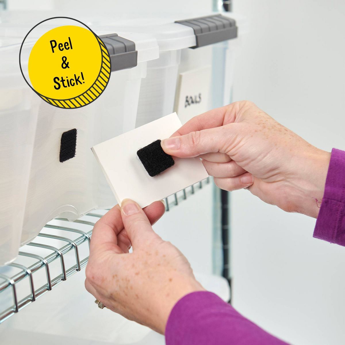 Versatility is the name of the game. Dads stick 'em to the remote so it no longer goes missing. Moms stick 'em to rugs to flatten those pesky corners. Teens stick 'em to their lockers to hang dry-erase boards. Just don't lick 'em, because the adhesive tastes terrible. Just peel and stick! Our hook and loop fasteners easily install onto most smooth surfaces, so you can spend more time doing fun crafts with your kids and less time organizing. The strong adhesive and durable nylon hook and loop material is tough enough to handle any storage or organization job you throw at it. Even a preschool classroom is no match for these mighty little squares.