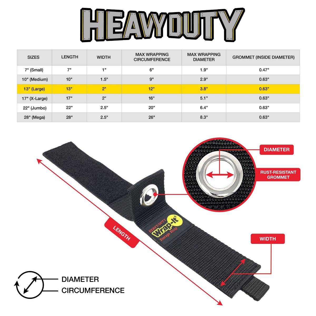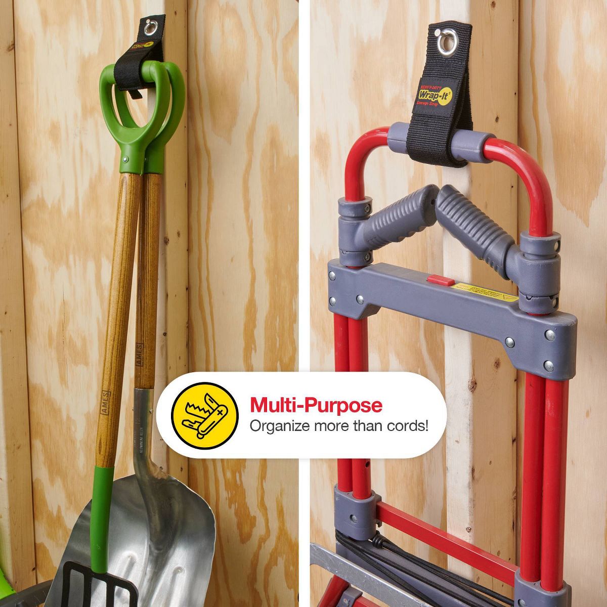 The 13-inch size is great for: organizing and hanging 25 to 75-ft extension cords, corded power tools, tie down straps, rope and dock line, outdoor power tools and so much more!