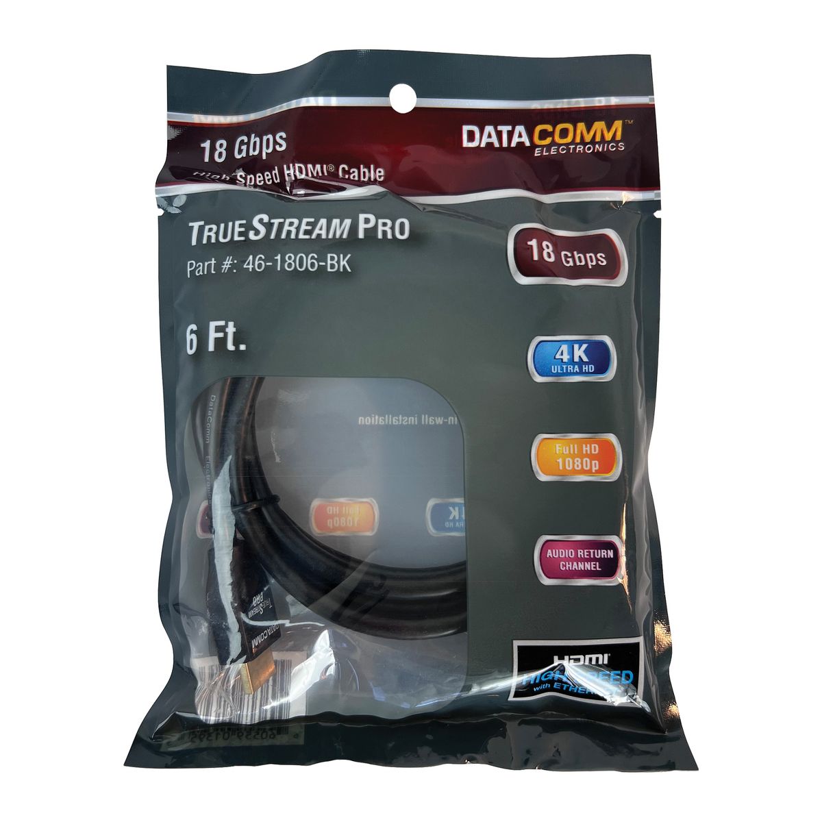 DataComm Electronics PrimePass Certified 18-Gbps High-Speed HDMI® Cable with Ethernet (12 Ft.) in Black