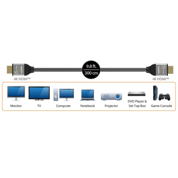 j5create Premium High Speed HDMI Cable with Ethernet, JDC52L30