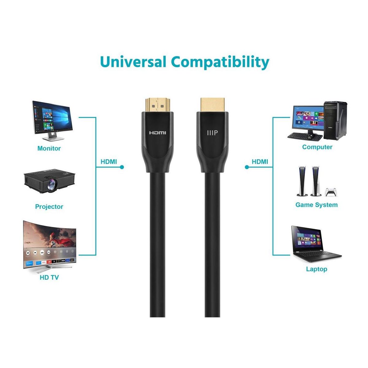 Monoprice 4K Certified Premium High-Speed HDMI Cable - 4K60Hz, 18Gbps, HDR, CL3 Rated, 30ft, Black