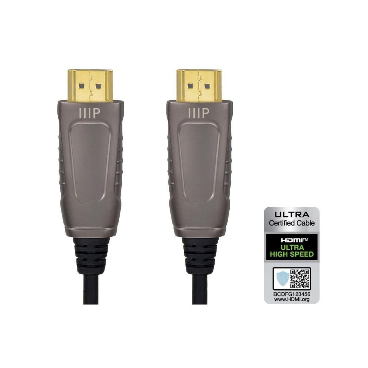 The Monoprice SlimRun AV 8K Certified Ultra High Speed AOC HDMI Cable enables full 8K performance over distances up to 65 feet. These cables are certified by an HDMI-authorized testing center; it supports up to 8K@60Hz or 4K@120Hz resolutions with up to 48Gbps bandwidth and all other features found in the HDMI 2.1 specification. The cables feature next-gen fiber optic technology, making it the perfect choice for the latest gaming consoles, including the Sony PlayStation 5, PlayStation 5 Digital Edition, Nintendo Switch, Microsoft Xbox Series X, and Xbox Series S. Being CMP Plenum-rated, it is certified for in-wall installation in the plenum air spaces of commercial and residential buildings.