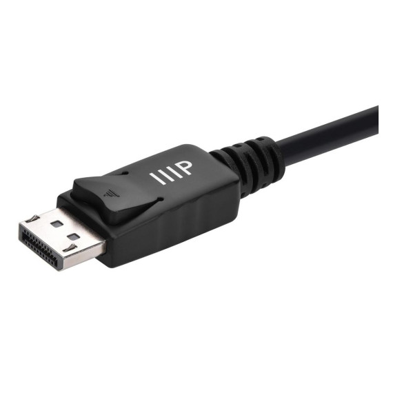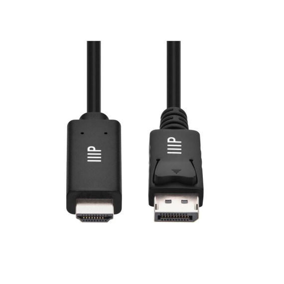The Monoprice DisplayPort 1.4 to 8K HDMI Cable, 8K 60Hz, 30AWG, 10ft is an essential accessory for seamlessly connecting your HDMI video display to a DisplayPort source. Whether you want to connect your video game console, Apple TV, or laptop computer to a high‑resolution display, this cable is designed to meet your needs. Engineered to comply with the DisplayPort 1.4 standard, this cable offers blazing-fast data transfer speeds of up to 32.4Gbps. With such impressive bandwidth, it enables you to enjoy stunning video resolutions up to 8K at a smooth 60Hz refresh rate. Experience exceptional clarity and lifelike visuals that bring your content to life in breathtaking detail. It's important to note that this cable is unidirectional, specifically designed to connect DisplayPort sources to HDMI displays. It will not function in the opposite direction, meaning it won't connect an HDMI‑equipped computer or video source to a DisplayPort display. Make sure to check your device's specifications before making a connection. The cable's 10ft length provides ample reach to accommodate various setup configurations, ensuring flexibility and convenience. The DisplayPort connector features a standard mechanical latch, ensuring a secure connection between the cable and the panel connector. This latch mechanism helps prevent accidental disconnections, ensuring a stable and uninterrupted signal transmission. In addition to its impressive performance, this cable boasts a range of features that further enhance its appeal. It supports resolutions up to 8K at 60Hz, allowing you to indulge in the latest high‑resolution content with exceptional clarity. Additionally, it can handle 4K resolutions at a staggering 120Hz, enabling smooth and fluid motion for fast‑paced gaming or action‑packed videos. Furthermore, this cable is backwards compatible with older DisplayPort standards, making it a versatile solution for various devices and setups. Whether you have a cutting‑edge DisplayPort 1.4 source or an older generation device, this cable ensures compatibility and seamless connectivity. Rest assured, Monoprice stands behind the quality of this product with their Lifetime Warranty. They are committed to providing customers with reliable and durable cables, ensuring your peace of mind and long‑term satisfaction. With the Monoprice DisplayPort 1.4 to 8K HDMI Cable, 8K 60Hz, you can elevate your viewing experience to new heights. Immerse yourself in the world of high‑resolution content, fluid motion, and reliable connectivity, knowing that you have a trusted and high‑quality cable at your disposal.