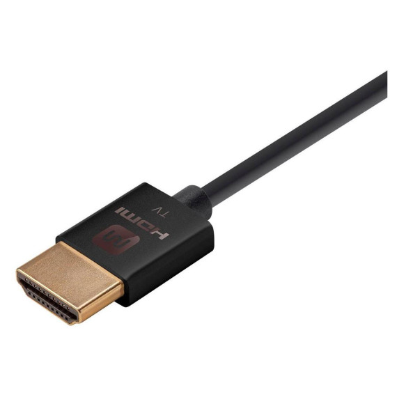 Monoprice 4K High Speed Slim HDMI Cable supports high-speed 4K video and audio transmission with HDR and Dolby Vision. Designed for home theater systems, it ensures optimal performance and reduced interference.