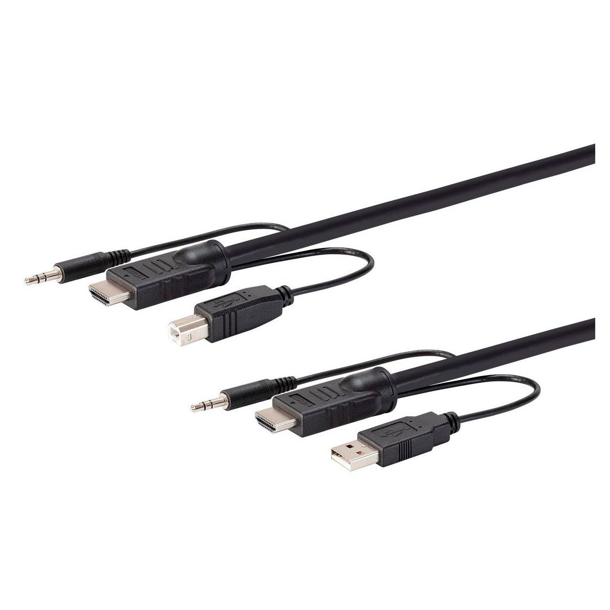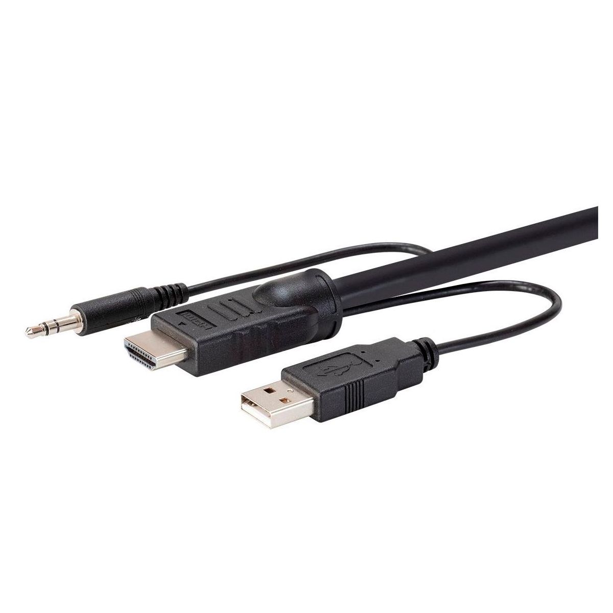 This Monoprice Switch Series HDMI USB 3.5mm Audio Combo Cable for KVM Switches is the easiest way to connect all your computers and servers to your KVM switches. It provides image clarity for high resolution applications, as well as USB and audio connections. The cables add great performance, high quality, and reliability to KVM applications.
