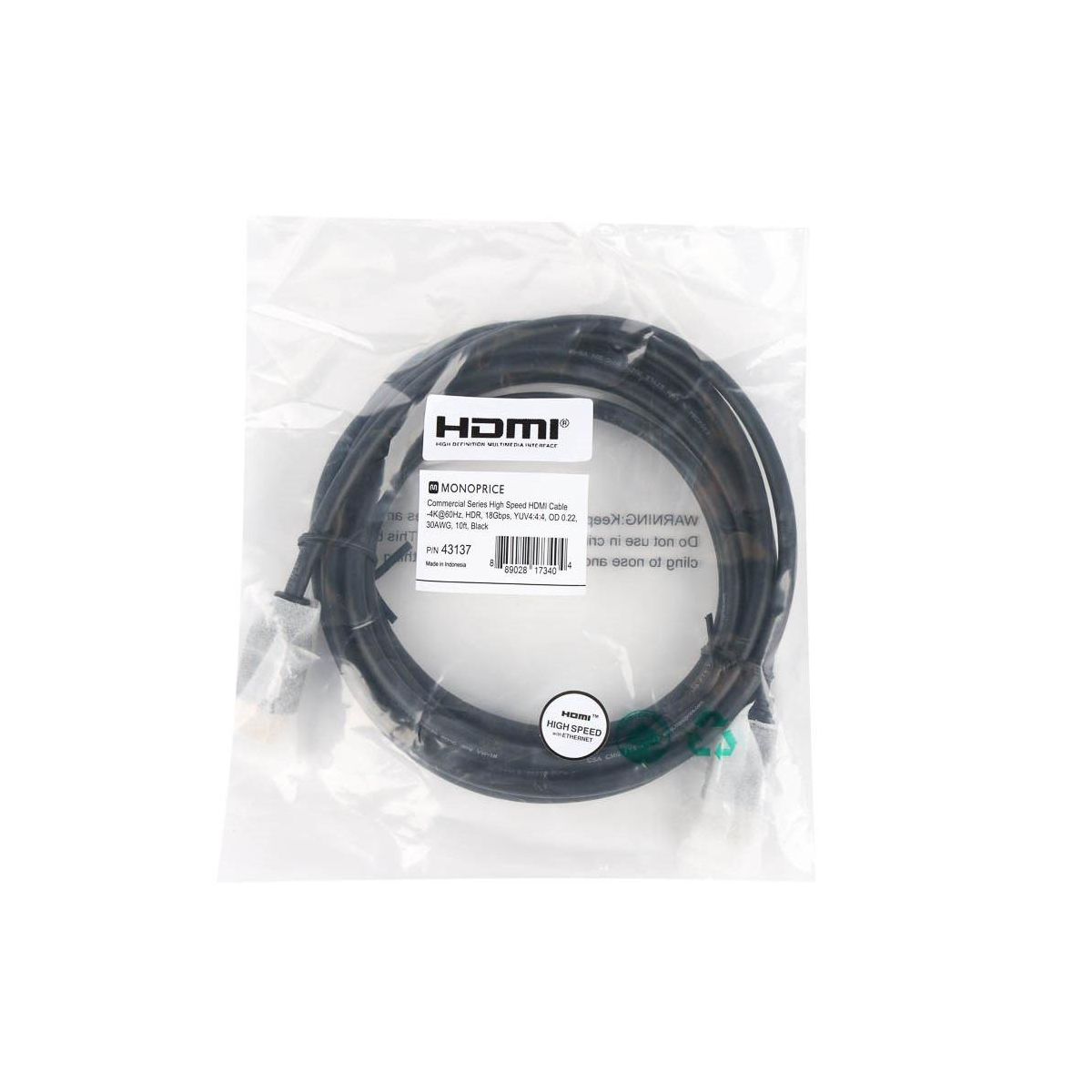 Monoprice Premium High Speed HDMI Cable - 10 Feet - Black | 4K@60Hz, HDR, 18Gbps, YCbCr 4:4:4, OD 0.22in, 30AWG, CL2 - Commercial Series