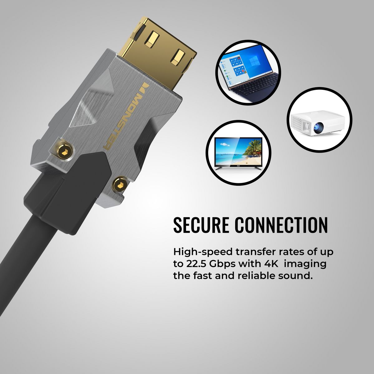 Monster M-Series Certified Premium HDMI Cable 2.0, 4K Ultra HD at 60Hz Refresh Rate, Duraflex Jacket, and Triple Layer Shielding, 22.5 Gbps - 16.4 ft