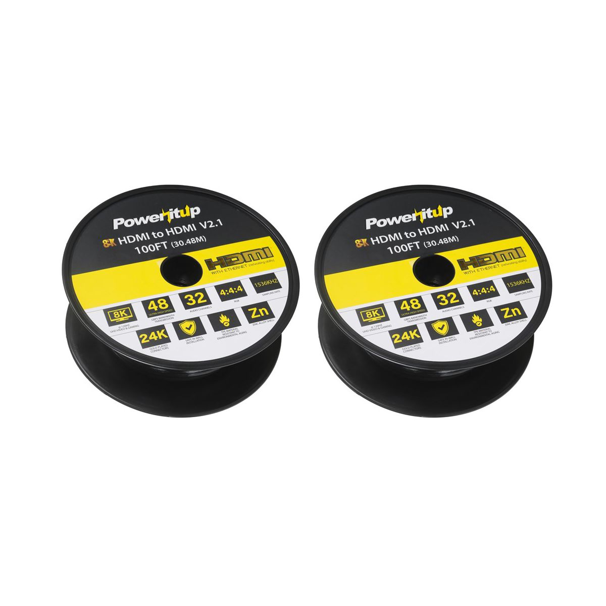 Power It Up 100 ft. 8K HDMI 2.1 Ultra High Speed Active Optical Cable - Package of 2 Cables