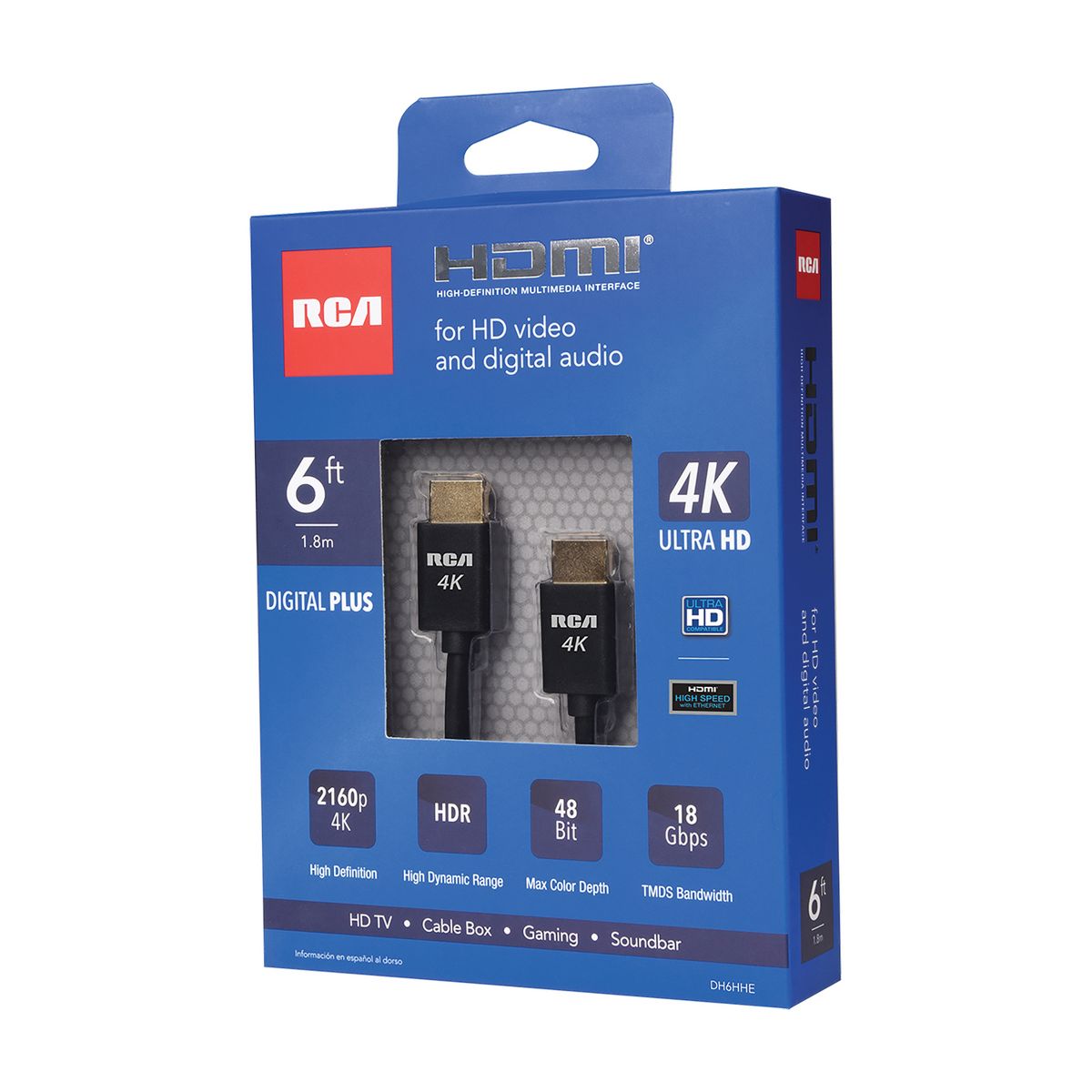 The 3-ft. RCA Digital Plus High Speed HDMI Cable transfers uncompressed high definition video and multichannel digital audio including surround sound. This cable allows the transfer of digital audio and video in a single cable, permitting a less confusing mess of wires and organized home theater center. The HDMI connector is small, which makes it is ideal for installers and in-wall use. HDMI cables can be used with HDTVs, receivers, DVD players, game consoles, cable and satellite set-top boxes, and DVRs._
