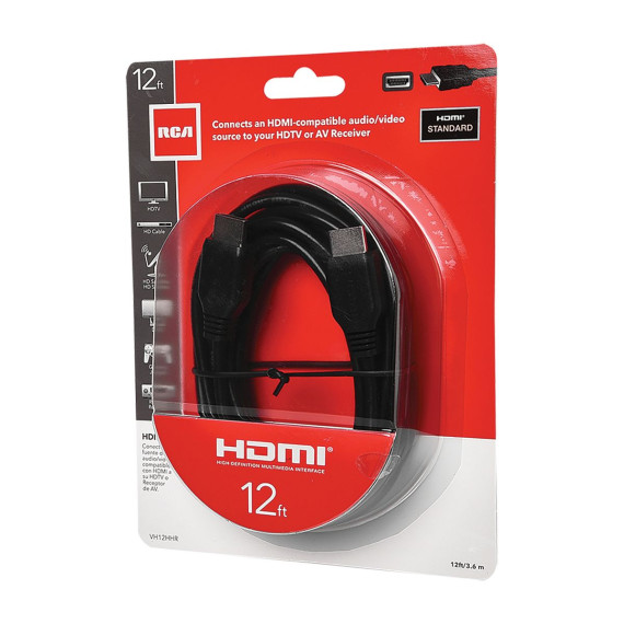 The 6-Ft. RCA HDMI Cable transfers HD A/V signals up to 1080p between your HDTV, Blu-ray player, DVD player, and more. Never settle for a signal quality less than what you get with an HDMI cable. It is easy to install and features bare copper shielding. Forget those complicated A/V cables for hooking up your components when you can easily use an HDMI cable for top quality picture and sound._