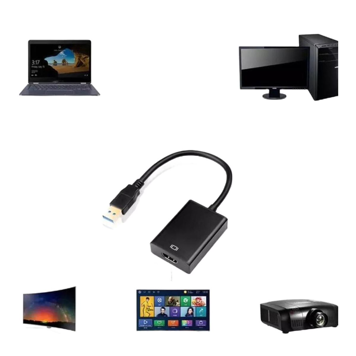 This USB 3.0 to HDMI adapter allows you to connect an additional display to your desktop or laptop computer. It supports ultra-high-definition displays with resolutions up to 1920x1080p. The adapter is easy to install and operate, and it features gold-plated connectors for durability and improved signal transmission.