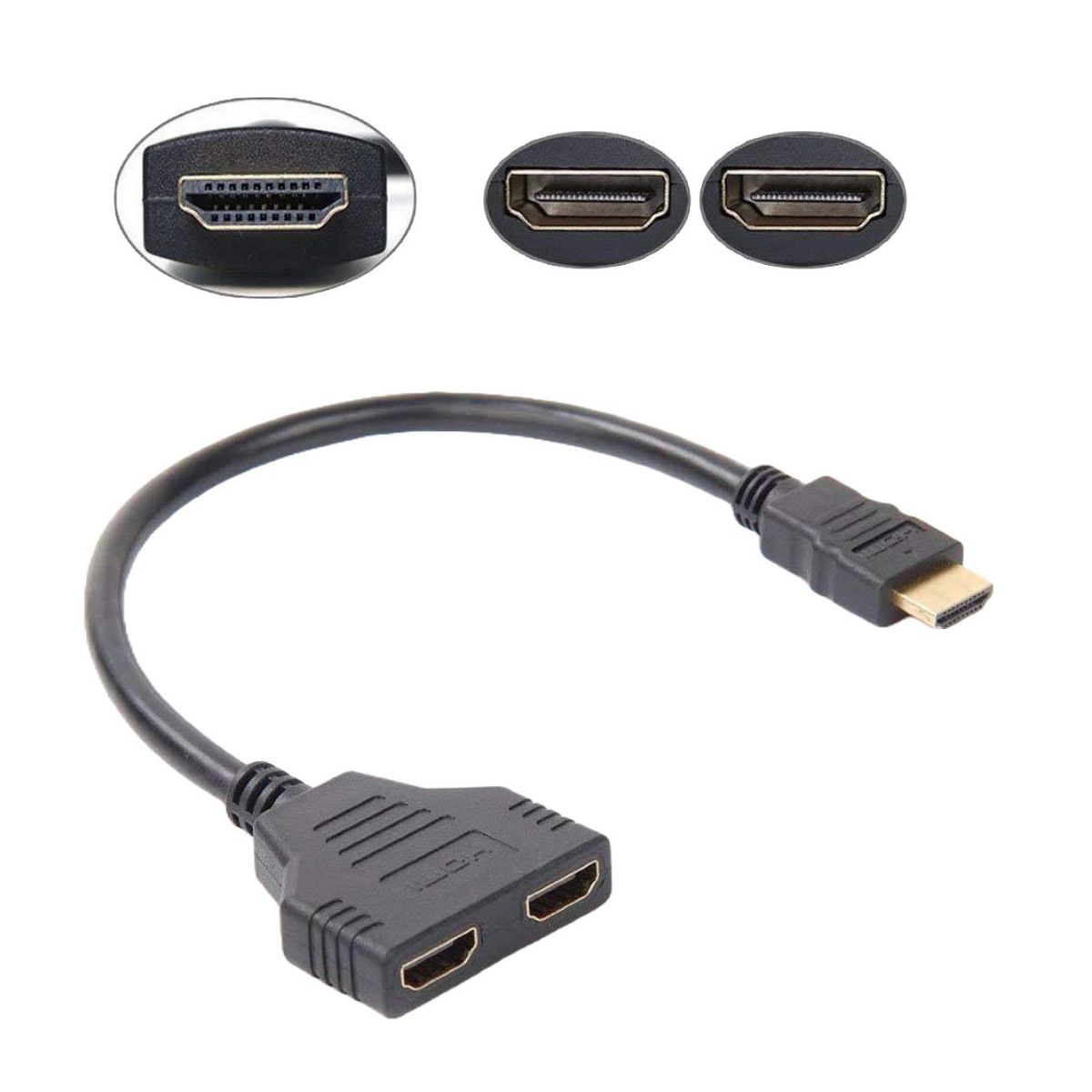 This HDMI splitter cable allows you to connect one HDMI device to two visual output devices. It is ideal for connecting a Bluray player, Xbox, or other HDMI device to two TVs or projectors. The splitter supports high definition image resolutions up to 1080p. Benefits: Connect one HDMI device to two visual output devices. Plug and play, easy to use