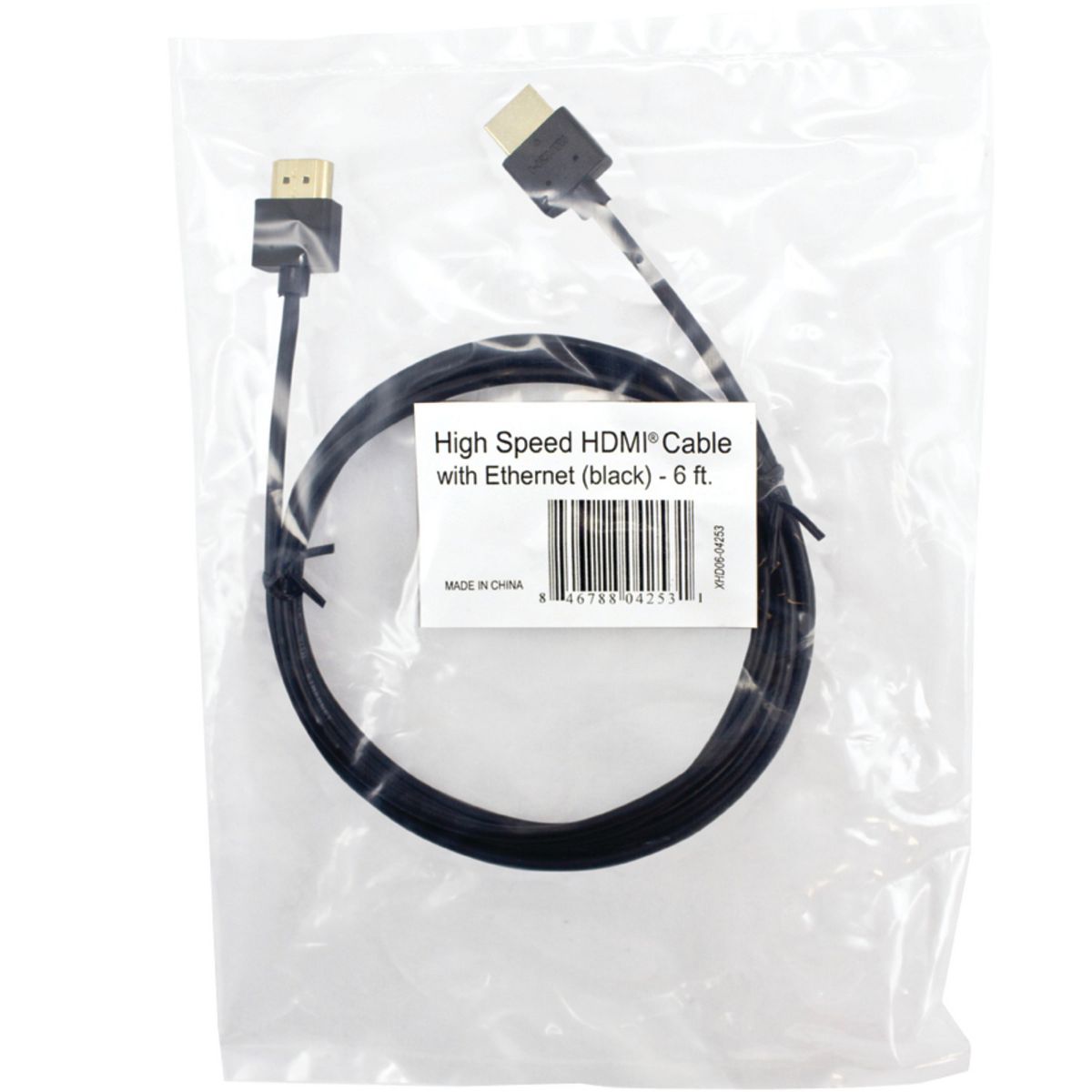 The Vericom VU Series High Speed Ultra-Slim HDMI Cable with Ethernet provides a reliable, high-quality connection between audio and video components such as Blu-ray players, cable and satellite set-top boxes, DVD players, A/V receivers, gaming consoles, and much more. This ultra-slim cable profile allows for professional installations in tight spaces. The 6-ft. Black cable features a durable molded PVC housing, gold-plated contacts, and corrosion-resistant gold-plated connectors with triple shielding for added EMI/RFI protection. The Vericom VU Series High Speed Ultra-Slim HDMI Cable with Ethernet consistently delivers the picture and sound quality today’s discriminating A/V enthusiasts demand._