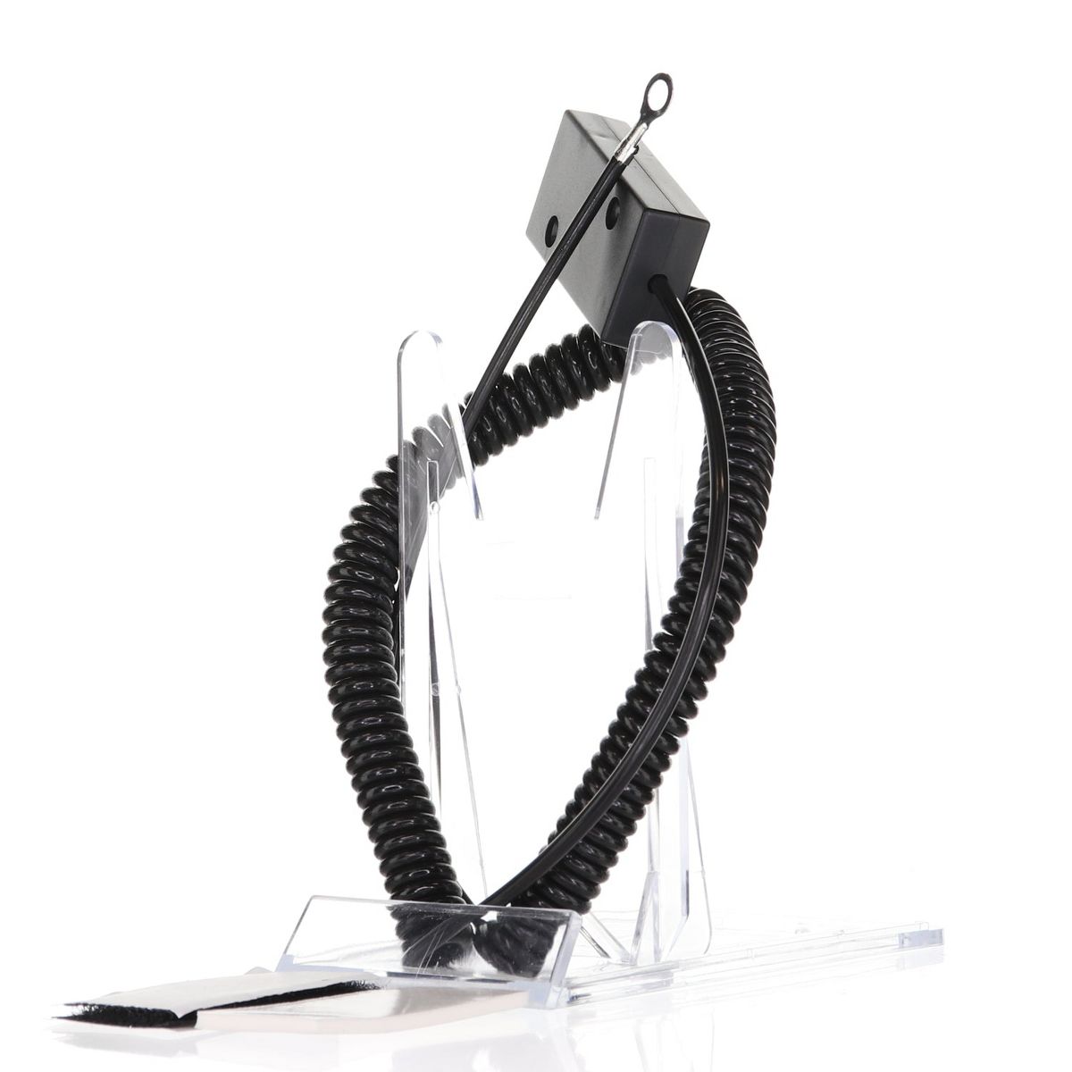 The CBL01 cable is designed to attach securely to any flat surface with its included double-sided sticky tape, ensuring your remotes or other items are always in a designated spot. The other end of the cable features a round loop, which can have many applications. No more searching through couch cushions or misplacing your remotes!