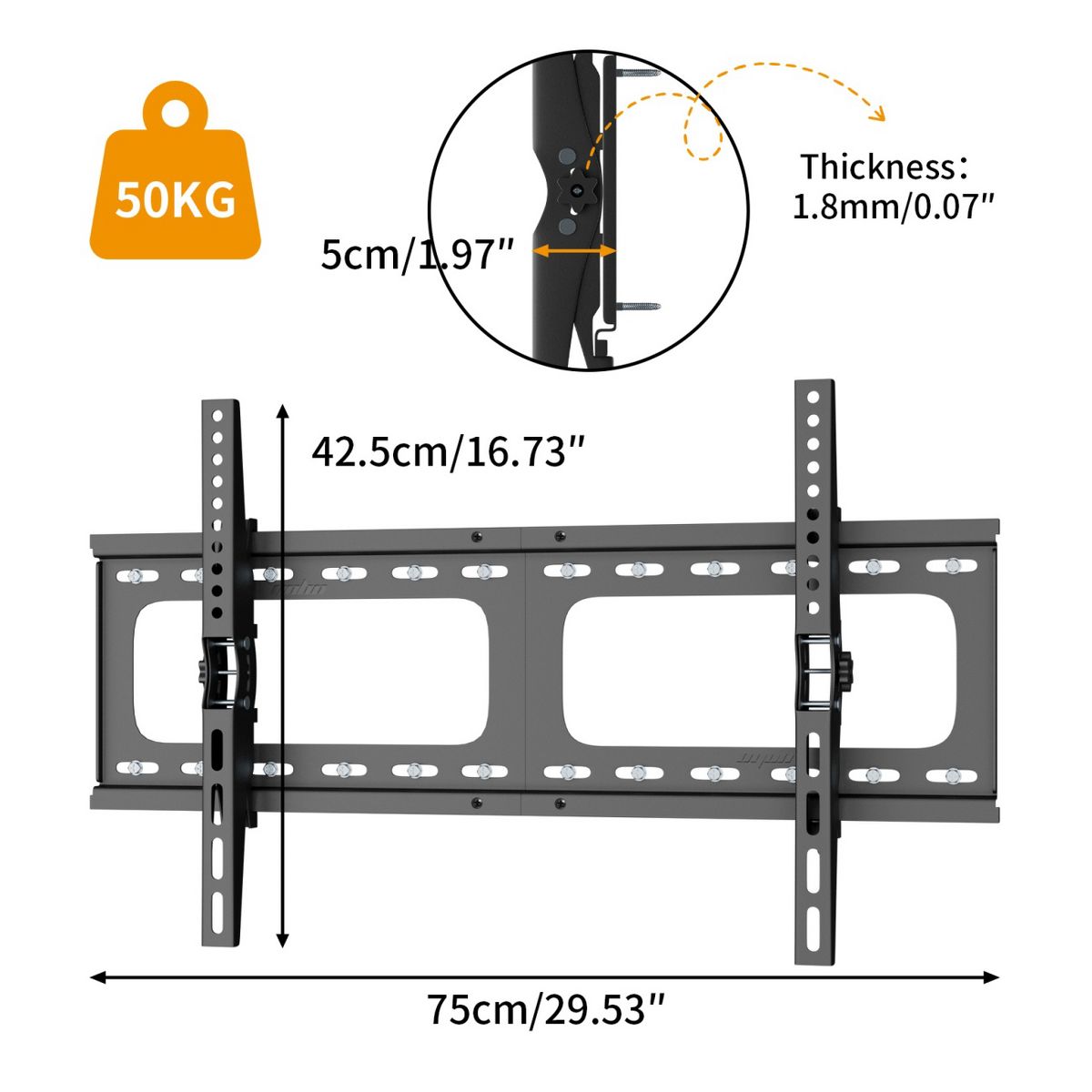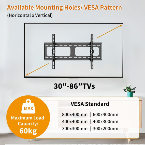 Upgrade your viewing experience with our heavy-duty tilt TV wall mount! Designed for 26-75" TVs up to 99 lbs, it supports VESA 700x400 patterns. Perfect for offices, homes, hotels, or businesses, this bracket tilts ¡À15¡ã for optimal angles. Crafted from sturdy SPCC steel, it sits just 2.36" from the wall for a sleek look. Easy installation with included hardware. Maximize space and style while ensuring secure support¡ªideal for any environment!