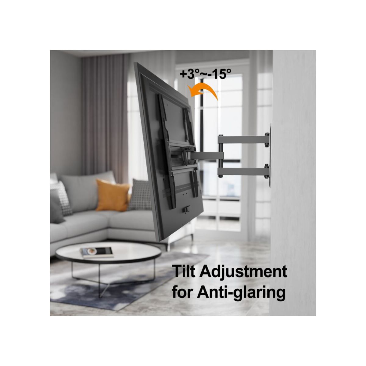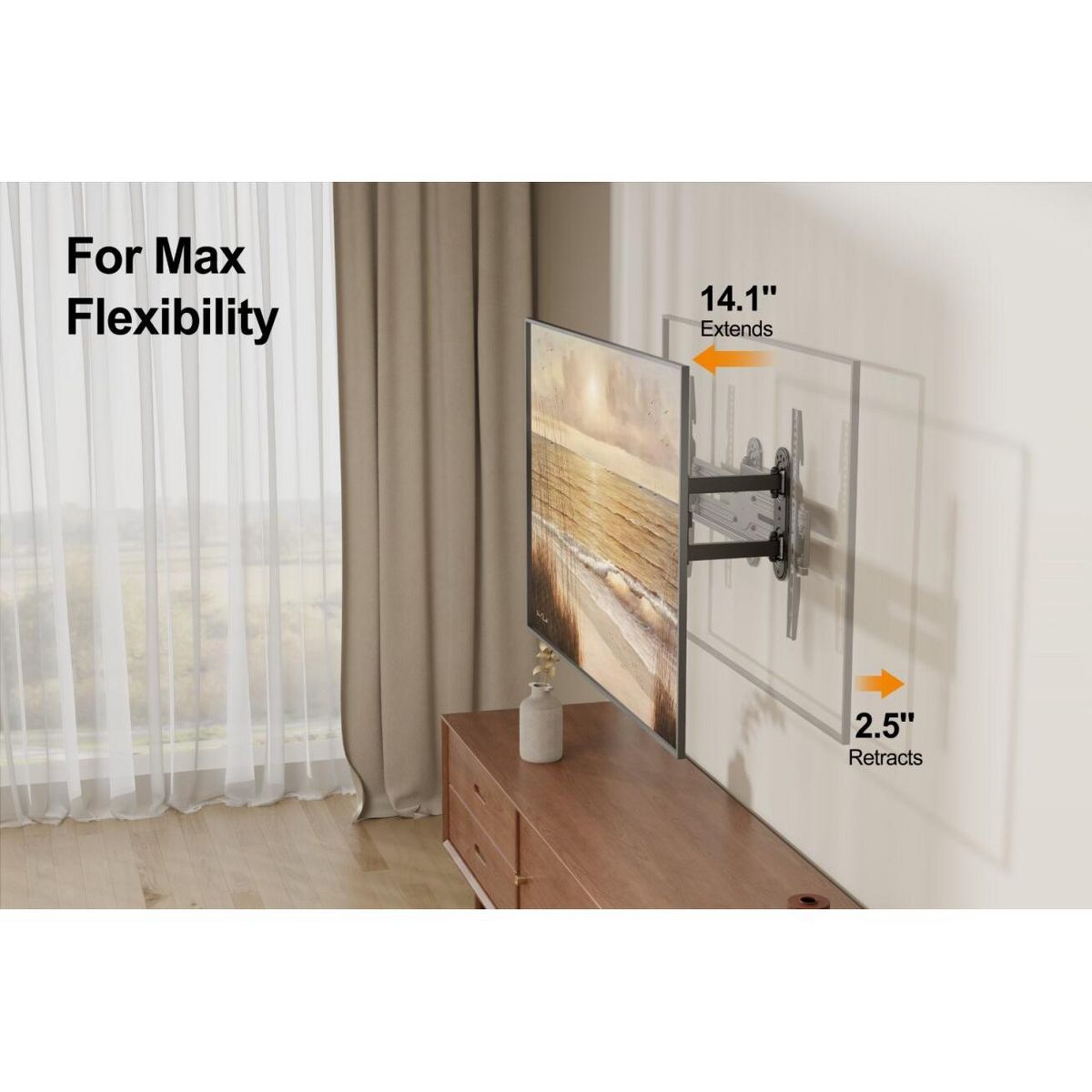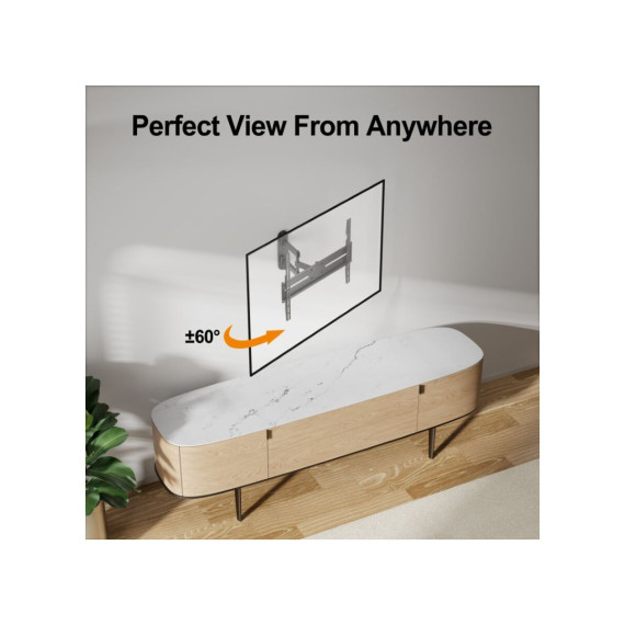 Featuring full motion capabilities, this mount allows you to extend, swivel, tilt, and rotate your TV for the best viewing comfort. Adjust your TV up to 14.1 inches from the wall or 2.5 inches. Swivel it 180° to the left or right, ensuring you can always find the perfect angle, no matter where you're sitting. The +3°~-16° tilt function also helps reduce glare and improves viewing comfort.