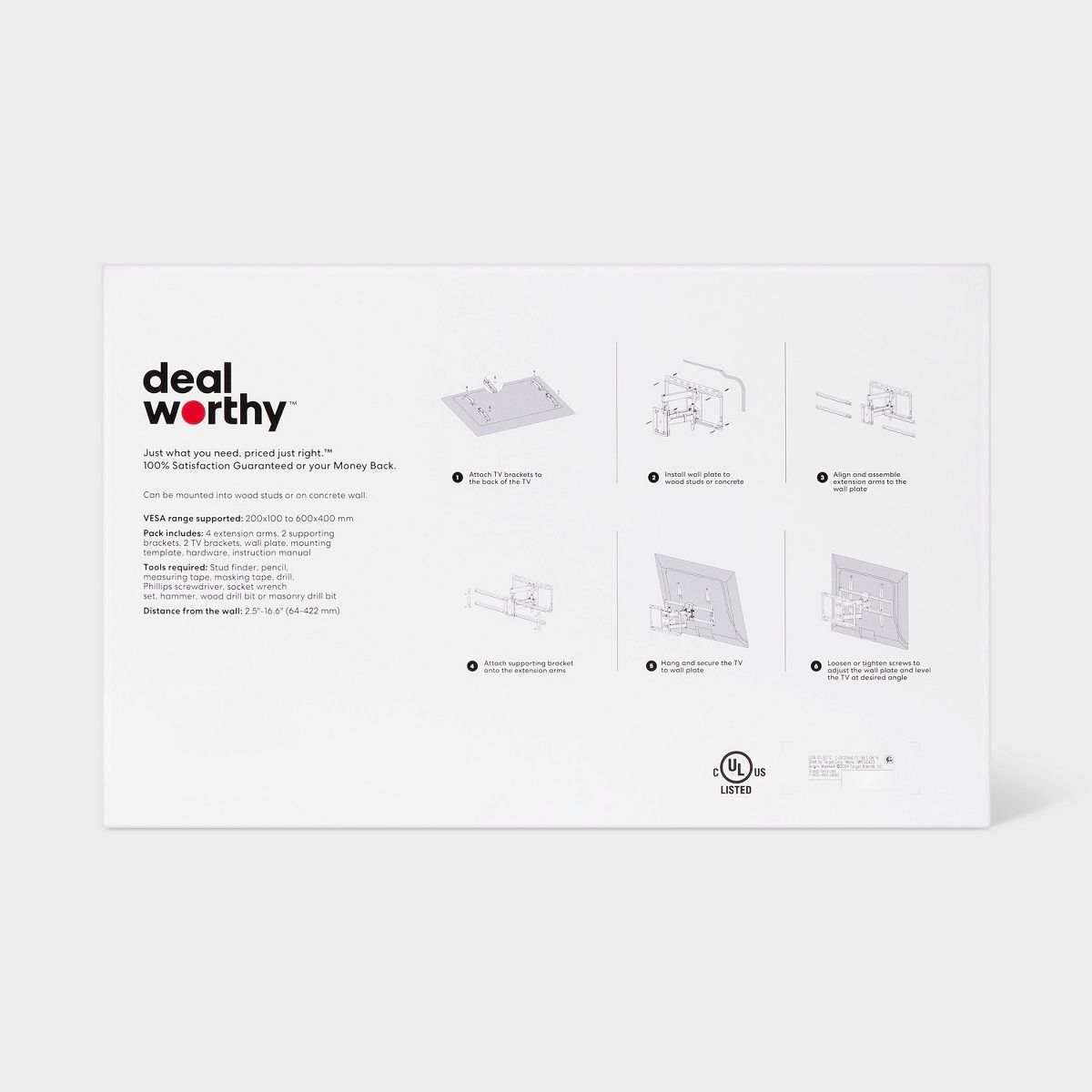 Full Motion 40" - 90" TV Mount - dealworthy™: Steel, 120lb Capacity