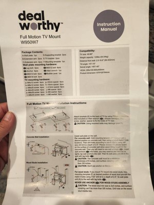 Upgrade your entertainment setup with the Full Motion 40" - 90" TV Mount from dealworthy™, designed to accommodate TVs ranging from 40 to 90 inches and holding up to 120 pounds. This robust mount features a full-motion design that allows for a 45-degree turn, providing flexibility in viewing angles to enhance your viewing experience. Constructed from steel, it ensures durability and stability, making it a reliable choice for your home. Whether you’re watching your favorite movie or playing video games, this TV mount provides the ideal tilt for maximum enjoyment.