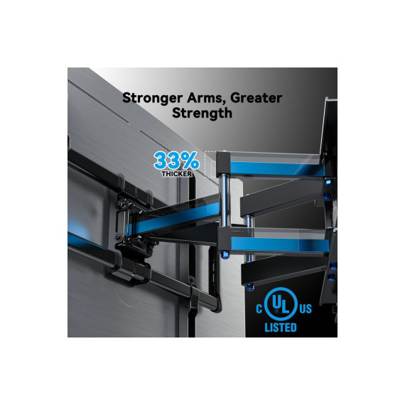 Full Motion TV Wall Mount for 40-86 In flat screen TVs weighing up to 132 LBS, Max VESA 600 x 400mm, Tool free tilting and rotation