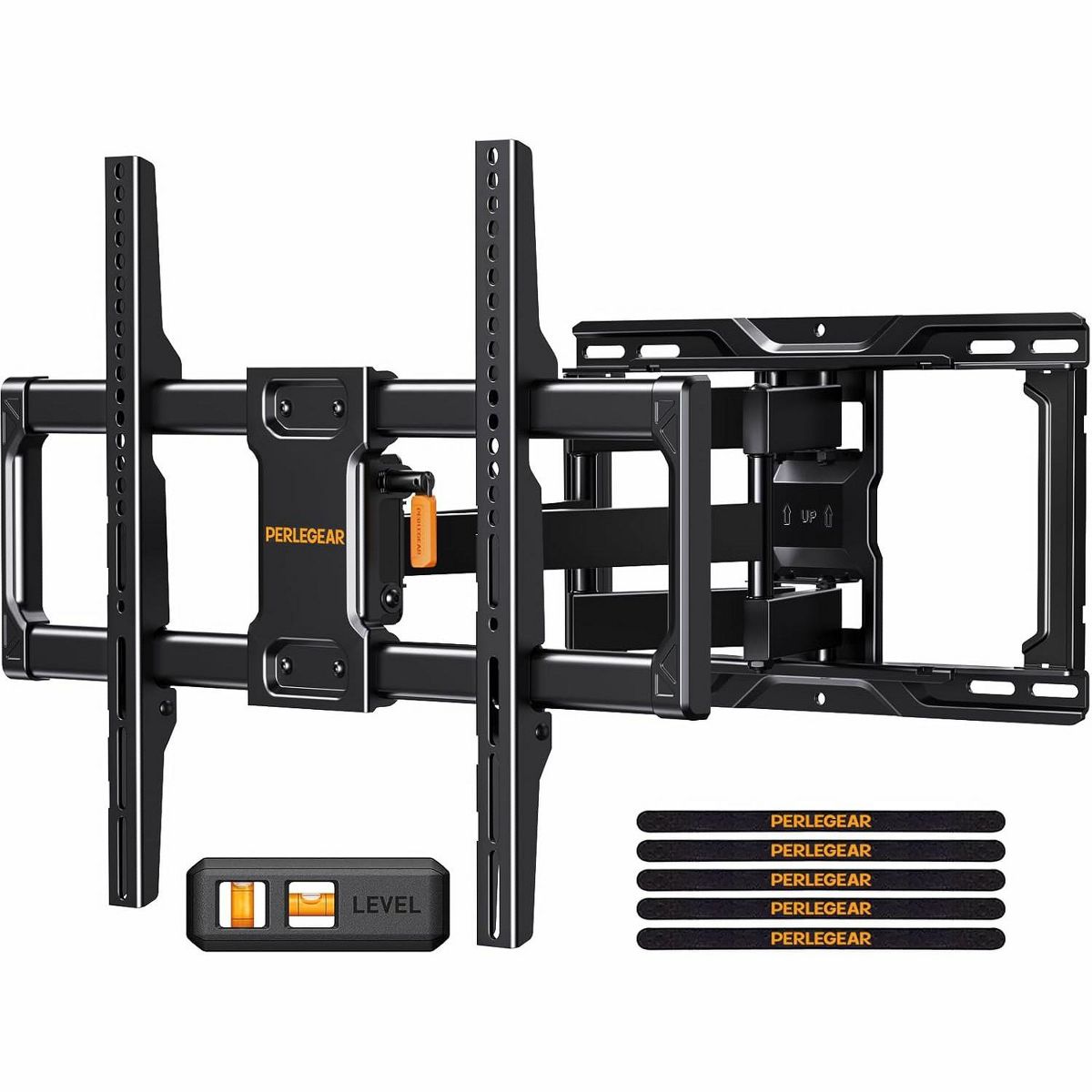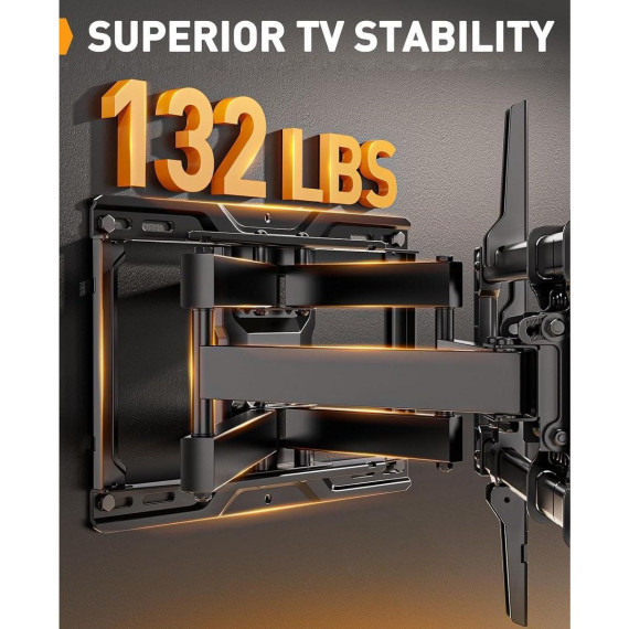 Strong Solid: Featuring dual articulating arms and heavy-duty steel construction, this TV wall mount bracket is performance, durability, and safety, and can hold up to 132 lbs. The upgraded wall plate is wider for more support, while anti-drop end caps and security locks help to keep your TV in place.