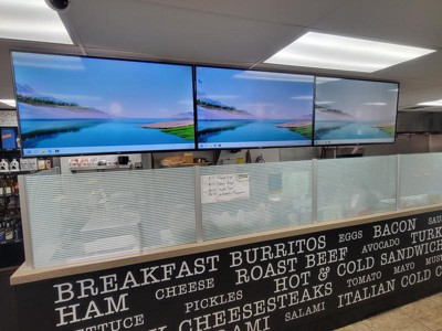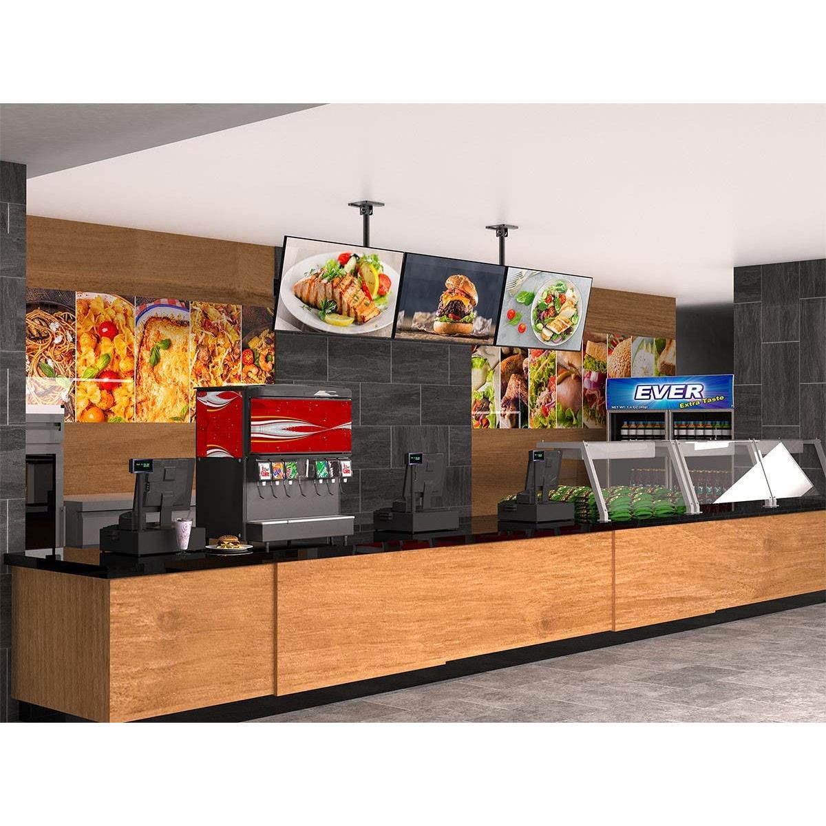 Display your menus anywhere with the 3x1 Menu Board Ceiling Mount. The seamless mounting surface perfectly aligns three displays in either portrait or landscape orientation, creating a seamless menu board suitable for restaurants and other public venues. This ceiling mount is compatible with any ceiling type or angle and works with 32in to 65in displays weighing up to 66 pounds each. The displays can be independently tilted from -6 degree to +15 degree, ensuring that you can eliminate glare from any display.