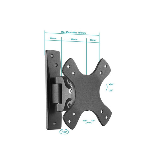 This wall mount allows the screen to be positioned as close as 1.77 inches (45mm) and as far as 3.93 inches (100mm) from the wall, with a tilt range of -20 to +20 degrees and a swivel range of up to -90 to +90 degrees (limited by the width of the screen), allowing the screen to be positioned for the optimum viewing angle from almost any location in the room!