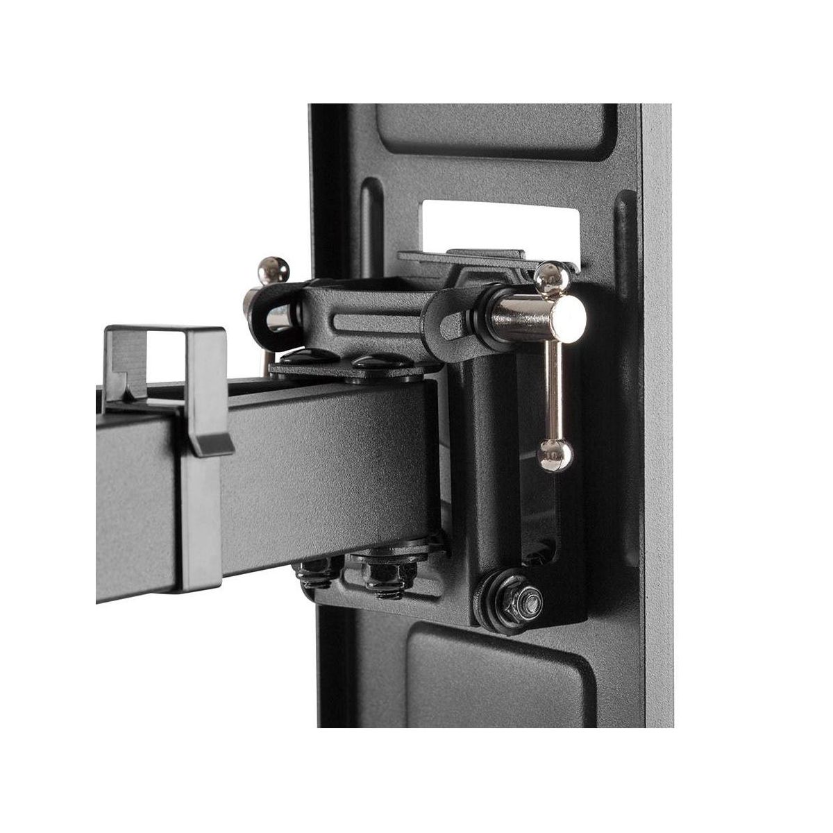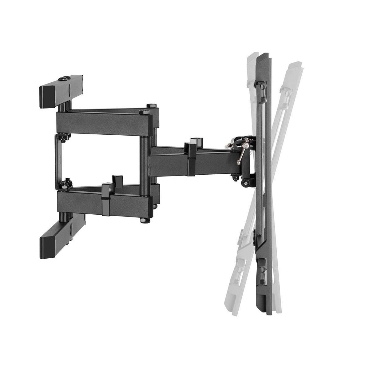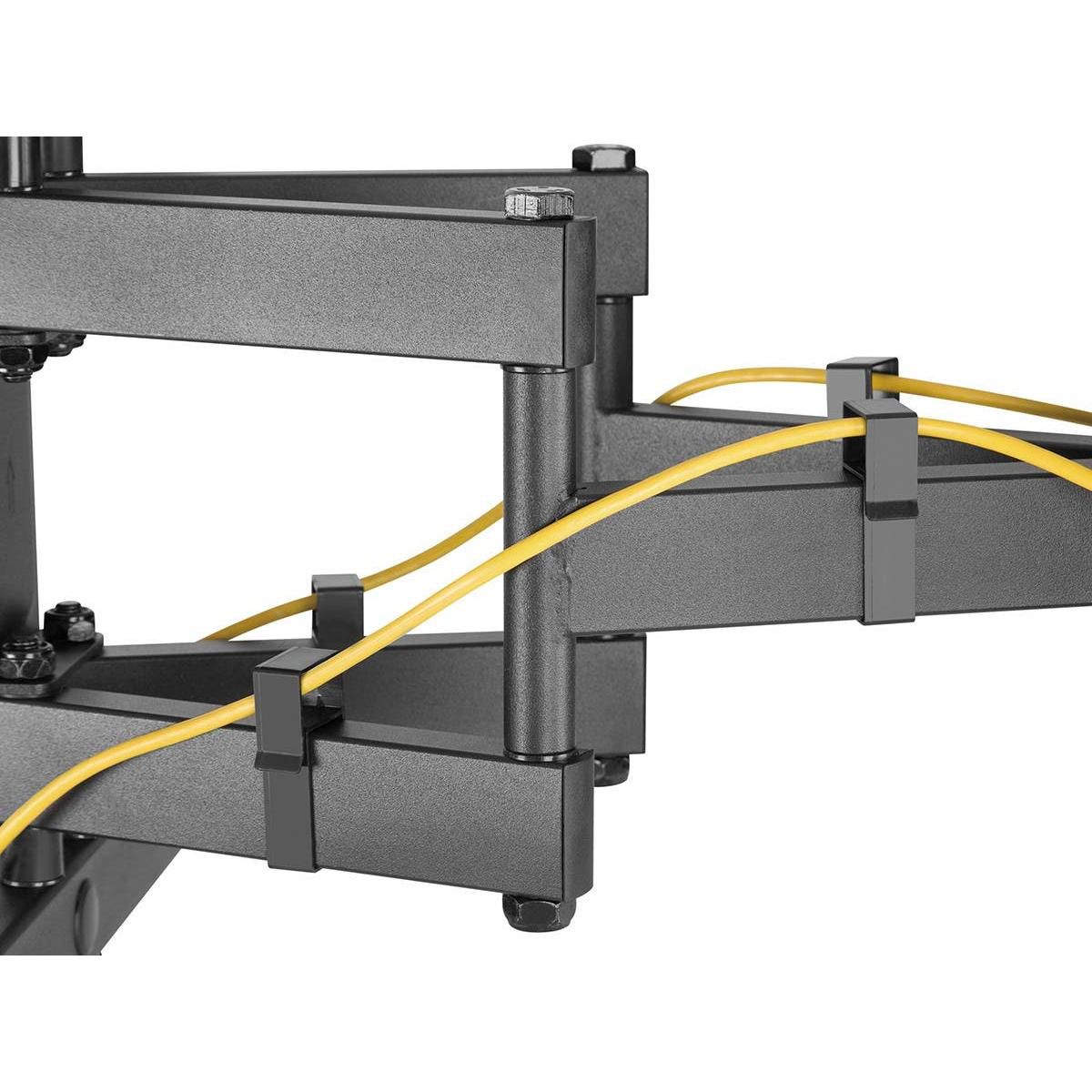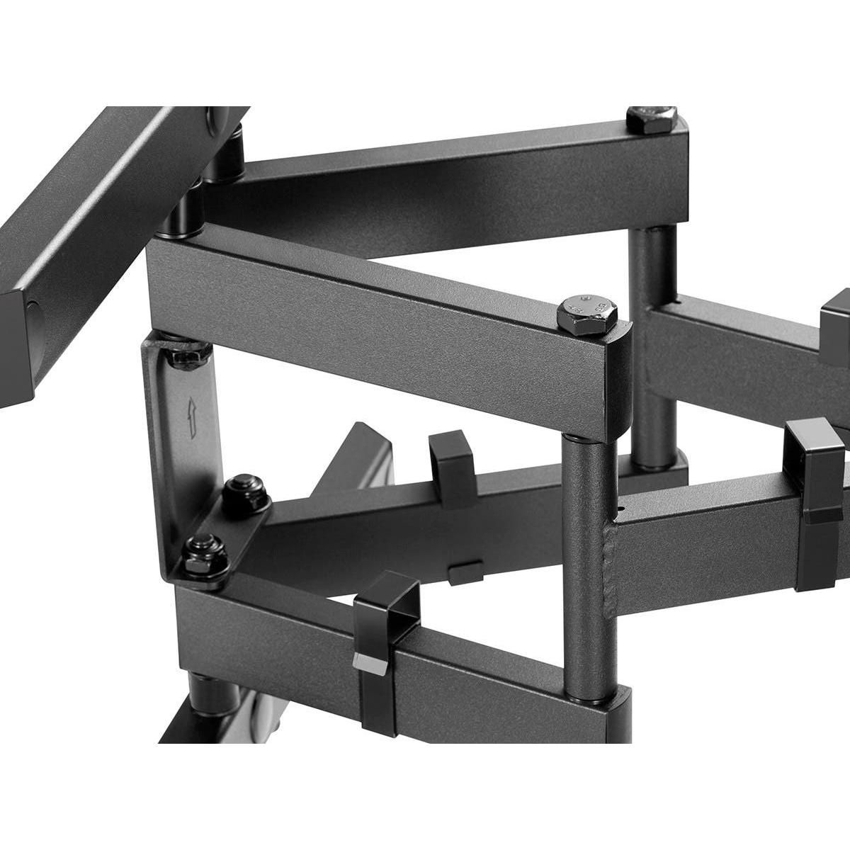 This Monoprice Commercial Series Full‑Motion Articulating TV Wall Mount Bracket allows you to adjust your TV for the most comfortable viewing angle, no matter where you choose to sit. Constructed of cold‑rolled steel, it can swivel up to 60 degree side‑to‑side, tilts from +3 degree ~ ‑15 degree, rotates ±5 degree, and can extend from 3.0" to 16.9" from the wall. It is designed for curved or flat screen TVs from 43" ~ 90" weighing up to 132 pounds, with VESA mounting patterns from 300x200 to 800x400.