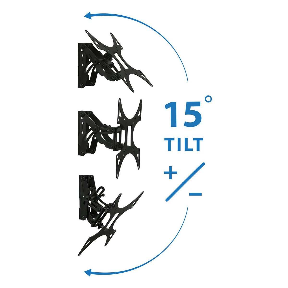 The MI-4601 full-motion TV wall mount provides a sturdy, slim profile for your TV. The wall mount features 60-degree swiveling and 30-degree tilting for optimum positioning. The locking knob can be used to tighten down the movements of your TV for a stiff mount, or loosened for easy and frequent adjustments. Easily removable TV mounting plate is ideal for applications where the TV needs to be frequently moved.All necessary hardware and assembly instructions included.