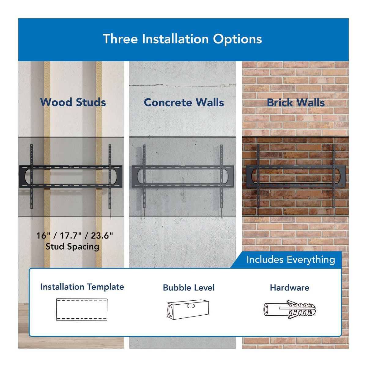Mount-It! Heavy Duty XXL Fixed TV Wall Mount, Fits 60" to 120" Screens, 264 Lbs. Weight Capacity