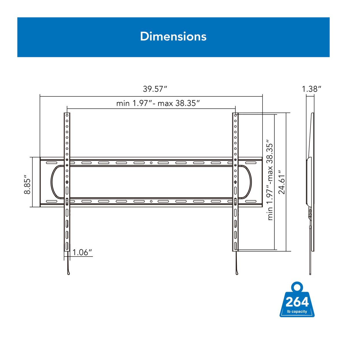 24.6 inches (H) x 39.6 inches (W) x 1.4 inches (D)