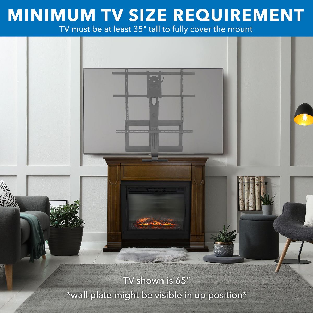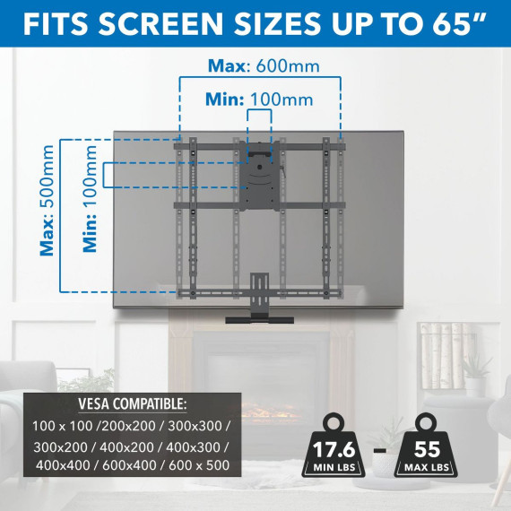 Mount-It! Height Adjustable Fireplace TV Mount | Pull Down Fireplace TV Mount - For TVs up to 65"
