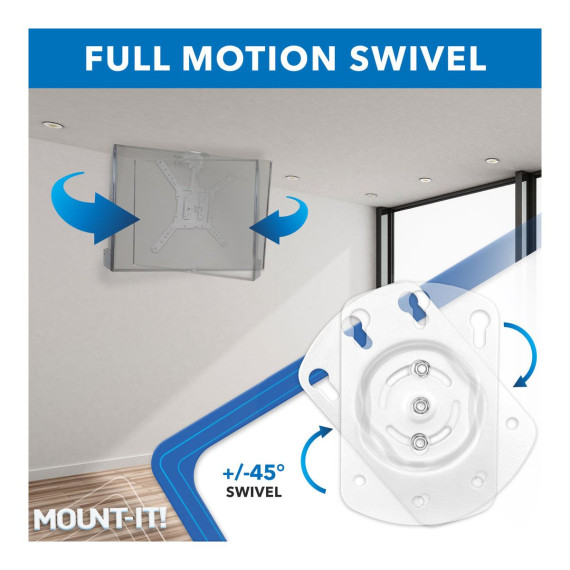 Mount-It! Height Adjustable TV Mount, Folding Ceiling TV Mount for 23 to 55 Inch, Heavy-Duty Bracket for Roof and Slanted Walls, White