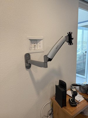 The MI-442 TV wall mount has a dynamic range of motion with a big range of height adjustability. The counterbalance tension arm offers 13.25" of height adjustment so that you can move your display with very little effort. Swivel over 180 degrees or tilt 15 degrees so you can set your TV at the ideal viewing angle. The in-arm cable clips keep your cables organized to ensure your space is clean and neat. Single stud mounting makes installation a breeze.