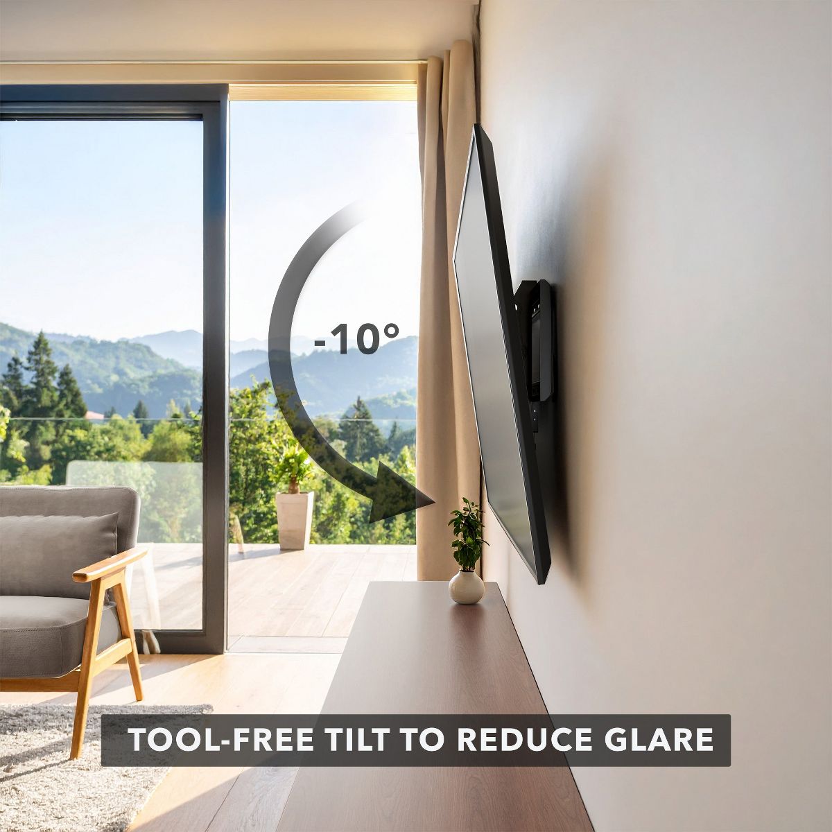 Our Ultra-Slim Tilting TV Wall Mount combines a sleek, minimalist design with everyday functionality. Its ultra-slim profile positions your TV just 1 inch from the wall, delivering a modern, picture-frame look that complements any dcorperfect for living rooms, bedrooms, or home theater setups where space and style matter. Built to support most 37 to 80 flat-panel TVs up to 121 lbs, its compatible with VESA patterns from 200x200 to 600x400 for wide-ranging TV compatibility. The tool-free tilt mechanism lets you angle your screen up to 10 to reduce glare from windows or lights. Whether you're binge-watching, gaming, or enjoying movie night, this TV wall mount enhances comfort without compromising on aesthetics. Installation is fast and easy with included hardware and instructions for both wood studs and solid walls.