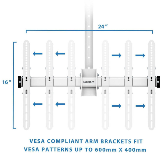 Ideal for commercial installations with high ceilings, this TV mount extends 5 feet from the ceiling. The full motion capabilities of this mount give your screen a large range of mobility for an adaptable and comfortable environment. The universal VESA compatibility ensures that this design will endure through multiple screen upgrades or replacements, so you will never have to buy another mount. All necessary hardware and instructions are included.