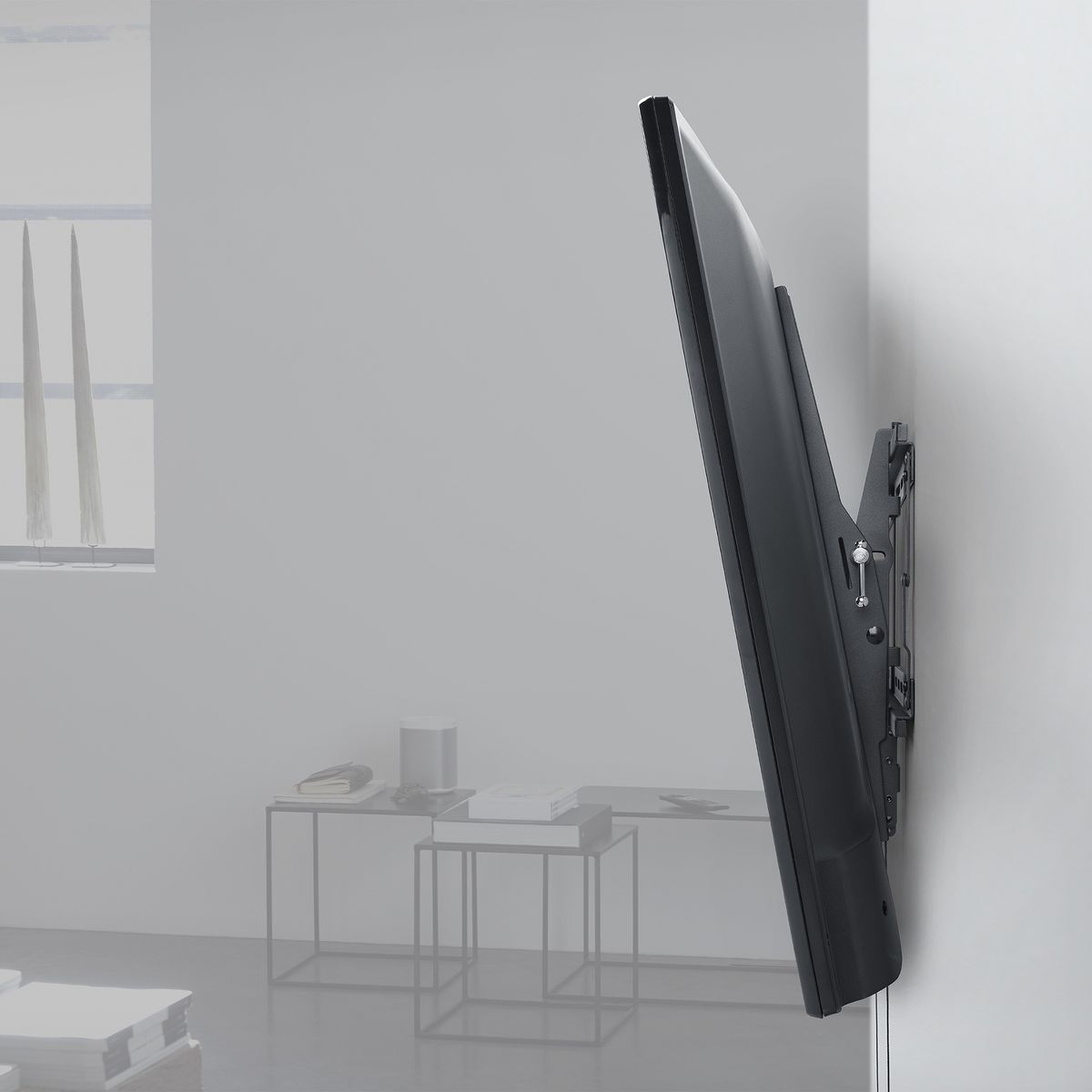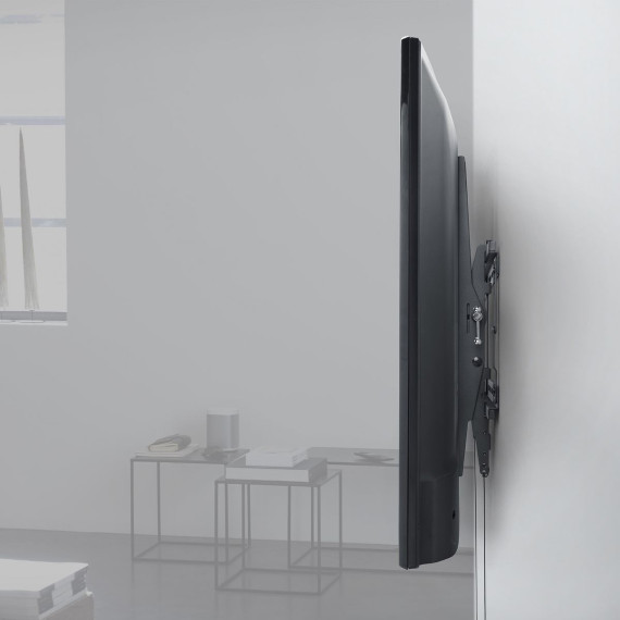 This One For All® TV Wall Mount with 15° tilt adjustment fits most TVs from 42 in. to 100 in. and is compatible with VESA® sizes up to 600 x 400. This modern wall mount allows fixed wall-to-TV distance of 1.9 in. (49 mm). The SOLID Series line of wall mount features a robust design. All mounting materials are delivered with the TV bracket for an easy installation._