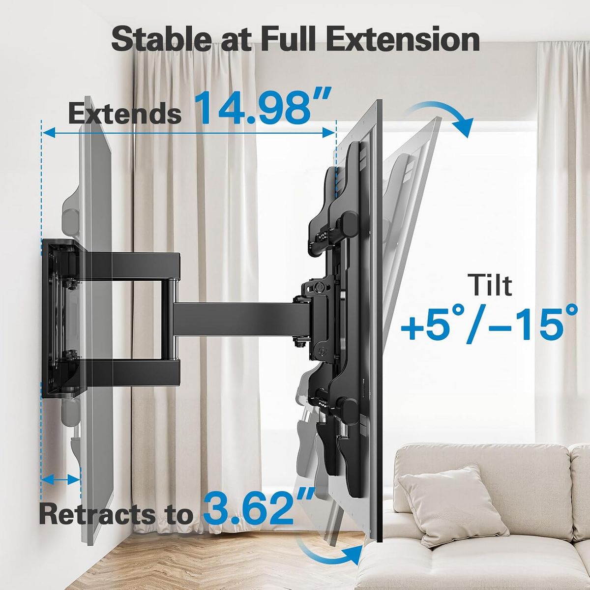 PERLESMITH Full Motion TV Wall Mount for 37-75 Inch TVs up to 132 lbs, TV Mount with Swivel Articulating Arm, Tool-Free Tilt, Max Vesa 600x400mm