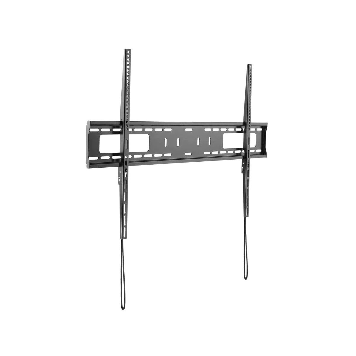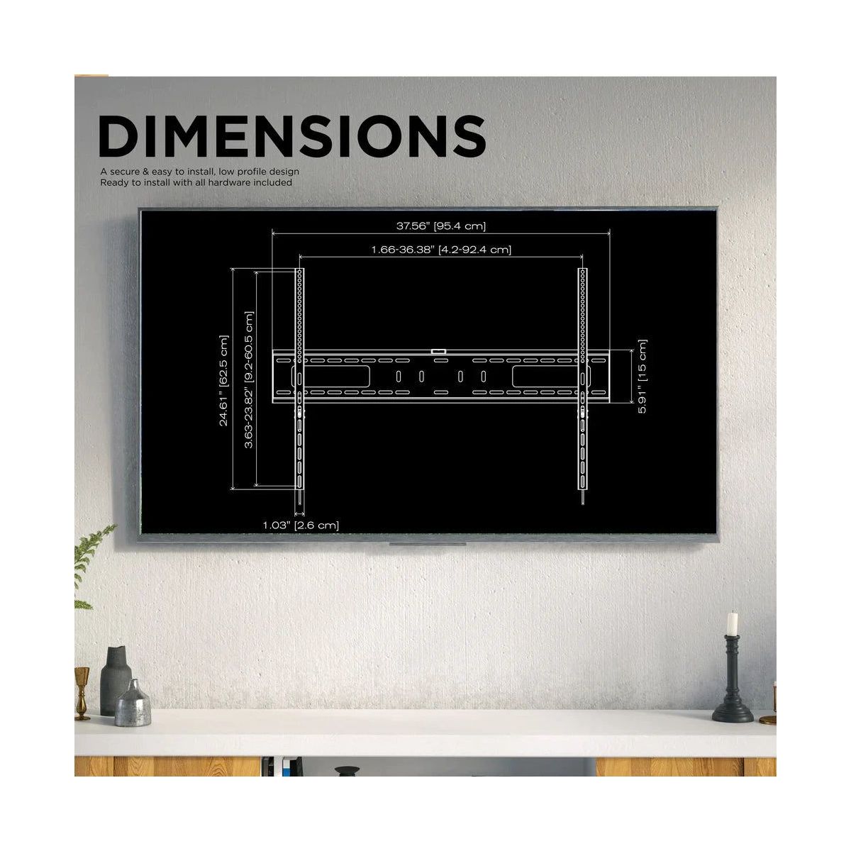 Safely mount your large TV to the wall for a sleek look with the ProMounts Low Profile Fixed TV Wall Mount, with VESA compatibility and solid metal construction. Low Profile Flat TV Wall Mount The ProMounts Flat TV Wall Mount has a full metal construction with thicker steel than other wall mounts on the market, so you can have full confidence mounting large TVs to the wall. Safely mount TVs and monitors ranging from 60 inches to 110 inches, weighing up to 165 lbs. The ultra slim design holds your TV just 1. 2 inches from the wall for a sleek, modern look. Sleek, Versatile Design With its ultra-slim profile, the ProMounts Fixed TV Wall Mount is perfect for any living room or entertainment space. Clear up space on your entertainment stand for a clean, modern look, or swap out your TV stand entirely with a sleek floating shelf for a minimalist, space saving TV setup. Safe TV Wall Mount Wall mounting your TV is a great way to protect your TV from bumps and tipping. The stands that come with large TVs offer very little protection against tipping, which can be a hazard in homes with pets or young children. The locking TV brackets and ultra strong construction of this TV flat mount ensure your TV is secure, keeping your television and your family safe. Easy to Set Up and Install All ProMounts TV stands and TV mounts are designed around the consumer. Installation is simple, with easy-to-follow instructions and all hardware included and labeled. The open design gives easy access to ports and cables, making setup a breeze. It is compatibile with TVs using VESA patterns 200x200 to 900x600, meaning you can use this TV wall mount with nearly all major TV brands.