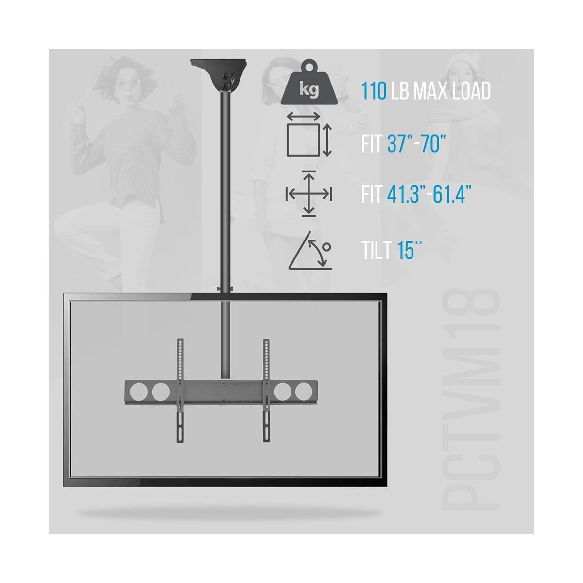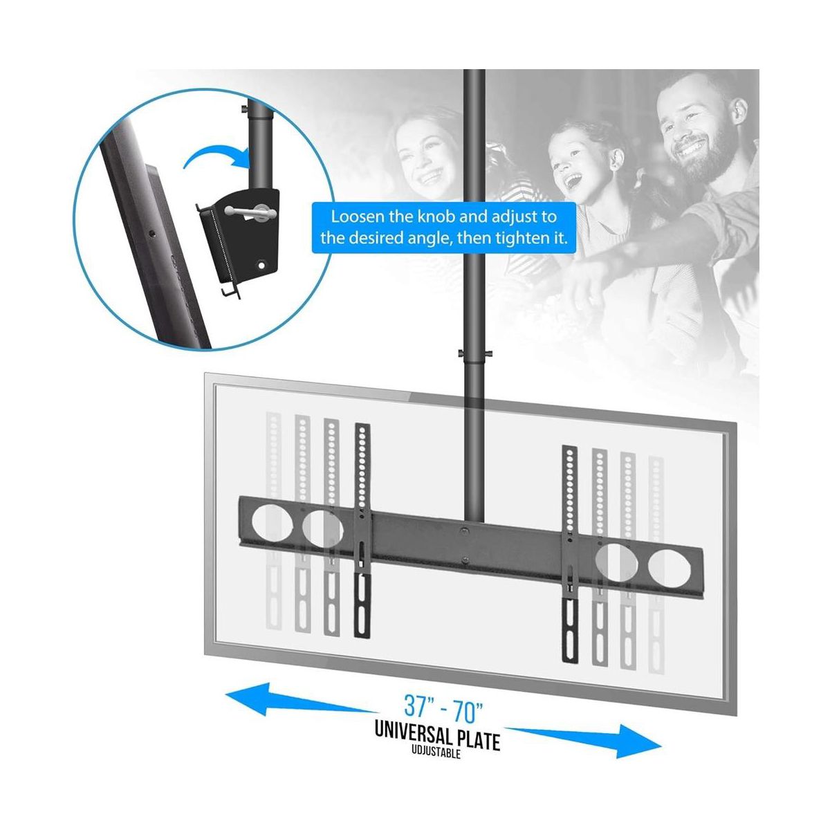 Pyle TV Ceiling Mount, Adjustable Bracket for 37-70 Inch TVs, Fits Flat or Pitched Ceilings
