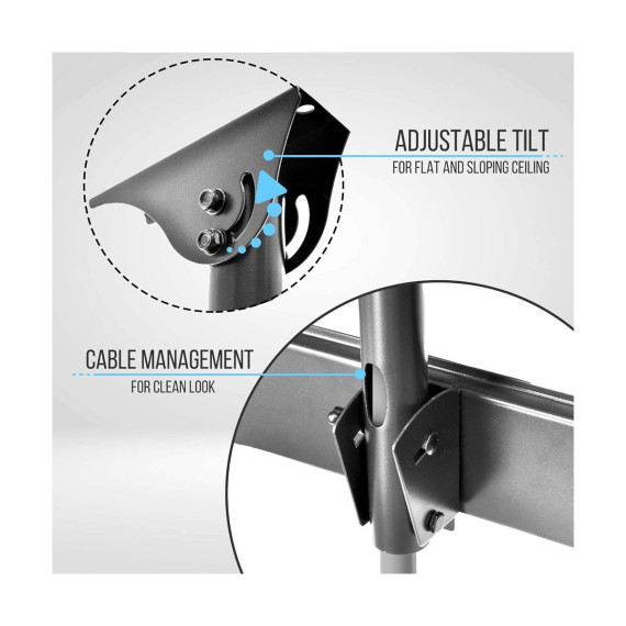 The Pyle PCTVM18 TV Ceiling Mount is the perfect solution for mounting your television securely and stylishly. Designed to fit screens from 37 to 70 inches, this mount is compatible with most HDTVs, LED, LCD, Plasma, and Smart TVs. The adjustable height feature allows you to set the perfect viewing angle, whether on a flat or pitched ceiling. Built with durable steel and featuring integrated cable management, this mount ensures a clean and professional look in any room. Ideal for home theaters, offices, and commercial spaces.