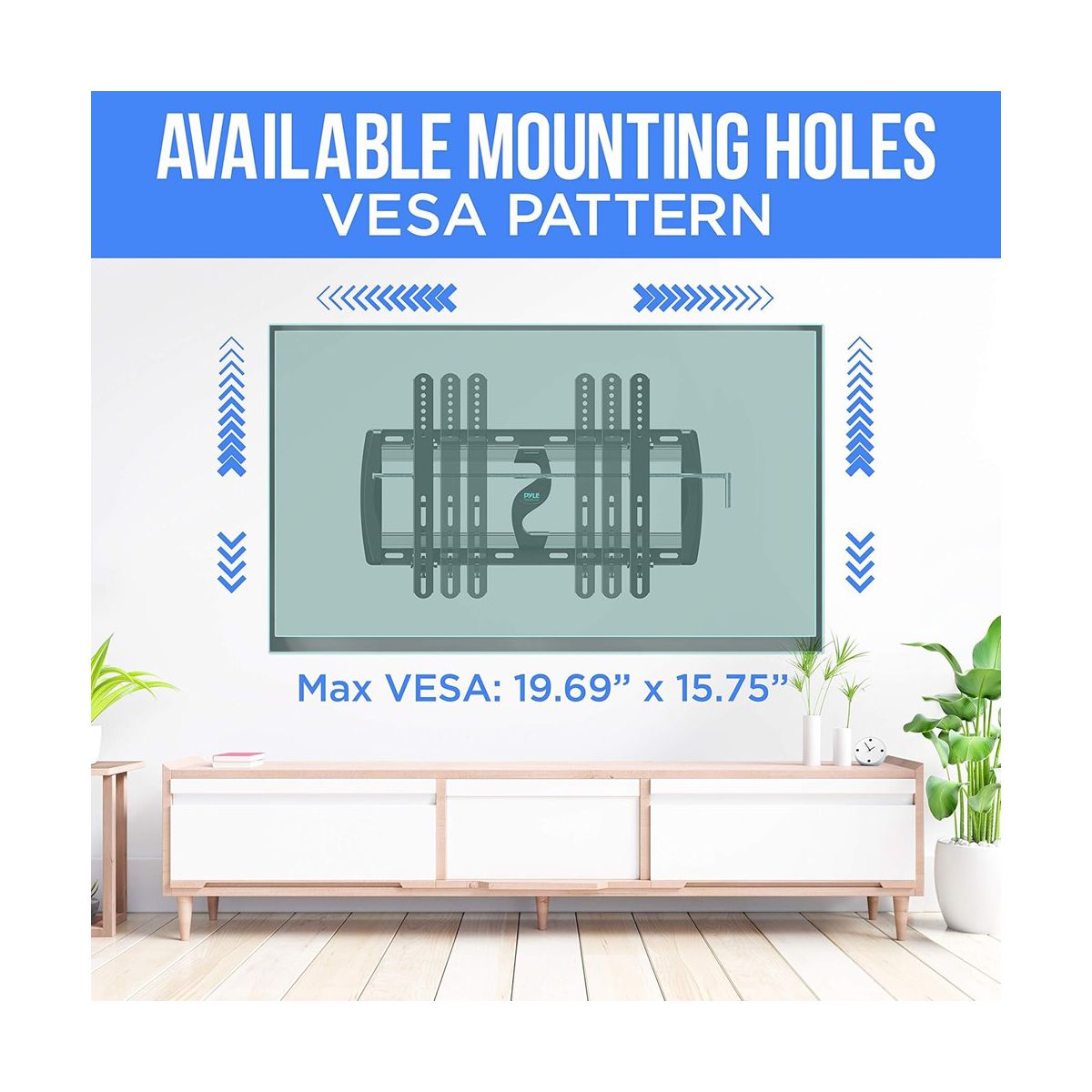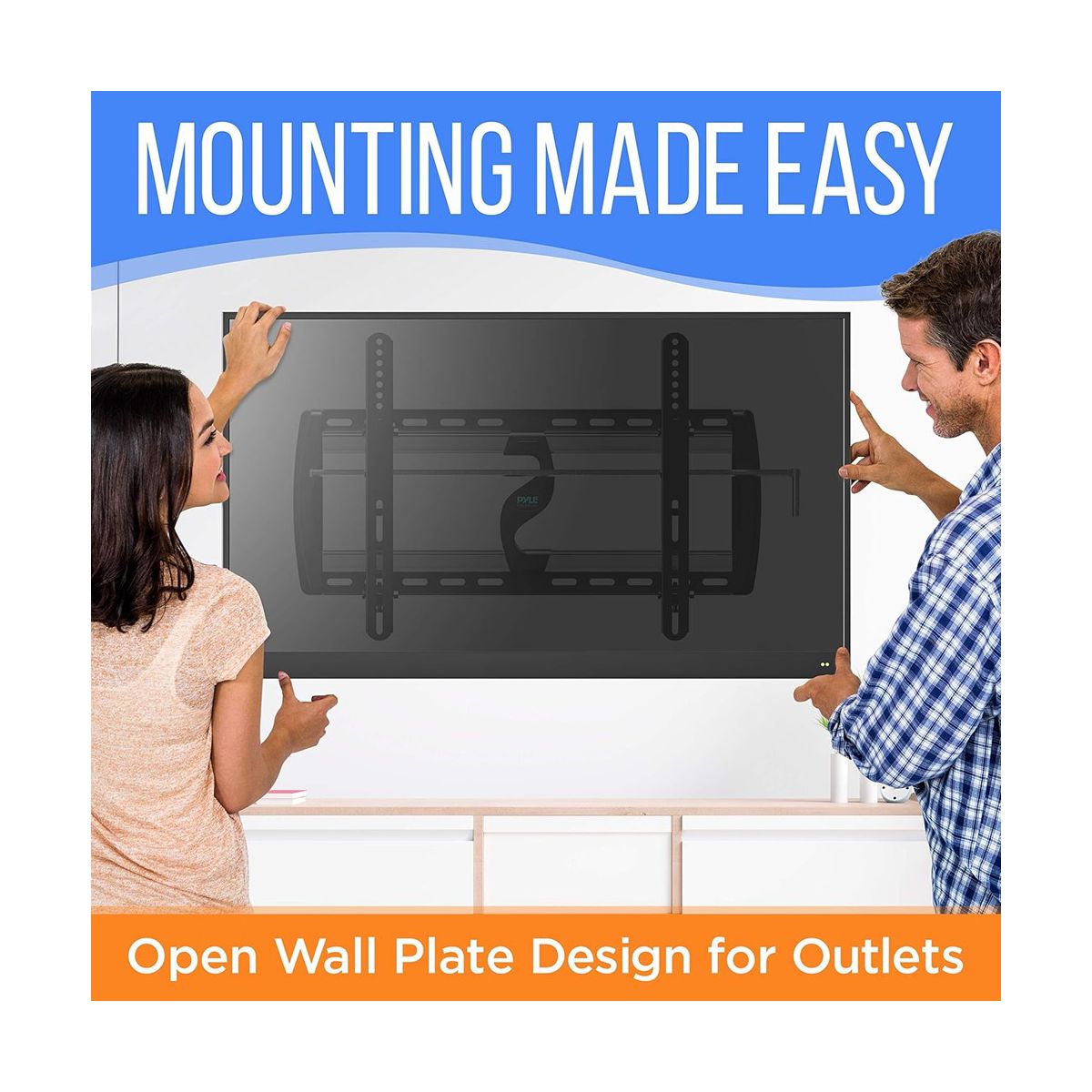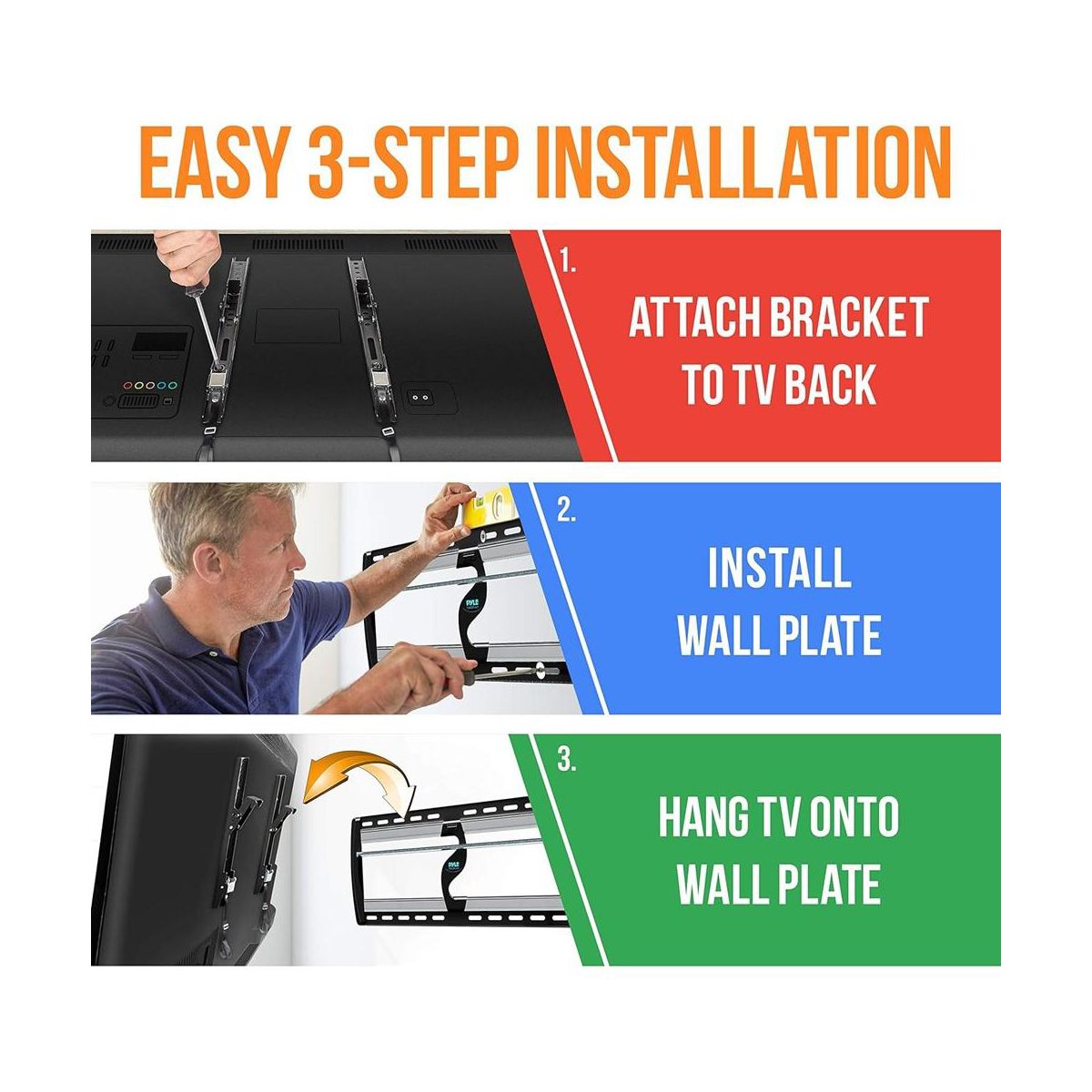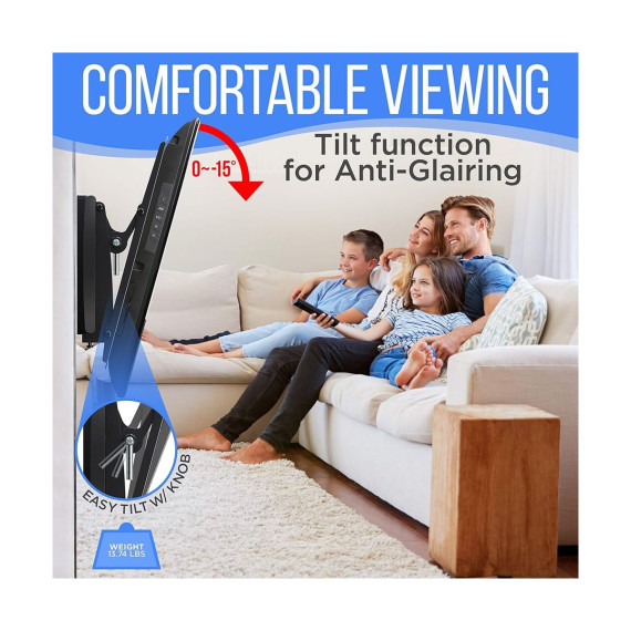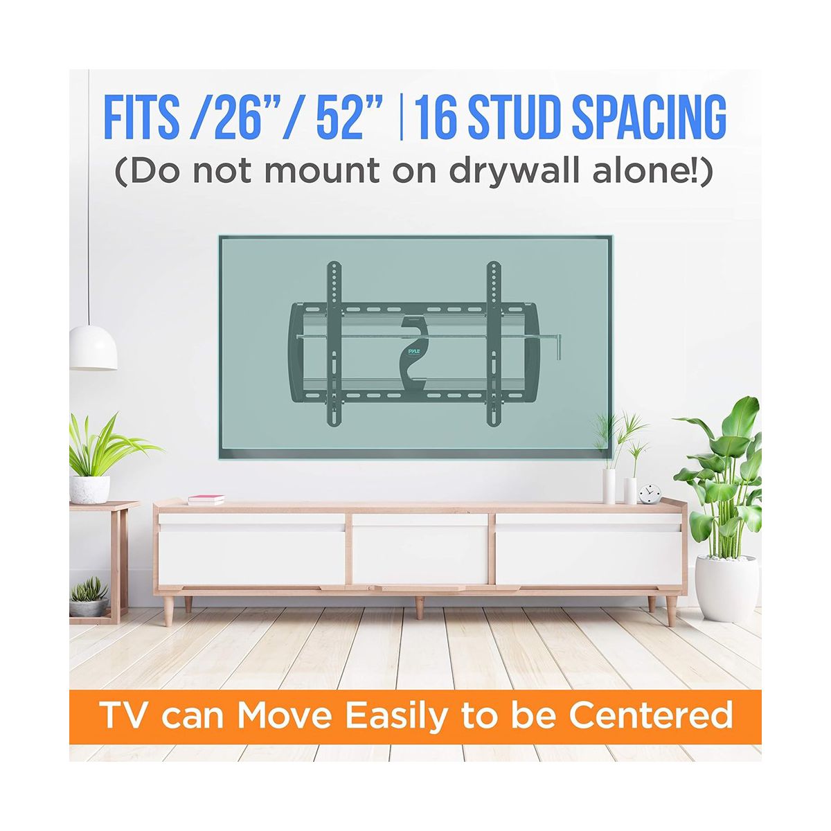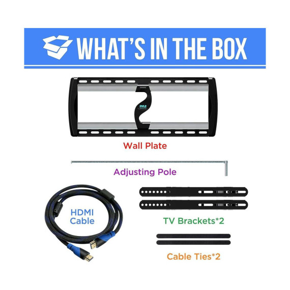 The Pyle TV Wall Mount Bracket, model PYWM24, is a durable and versatile solution for mounting your flat-screen TV. Designed to fit 26" to 52" screens, this mount supports up to 110 lbs, making it perfect for various TV models. The tilt feature allows for easy angle adjustment to reduce glare and improve viewing comfort. Constructed from heavy-duty steel, this mount is built to last, with a space-saving design that keeps your TV securely in place while providing easy access to outlets and cables.