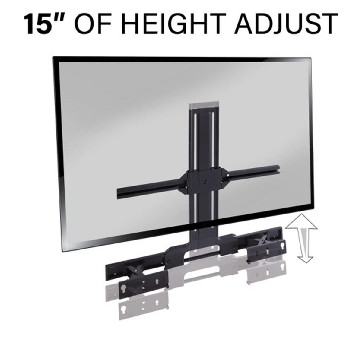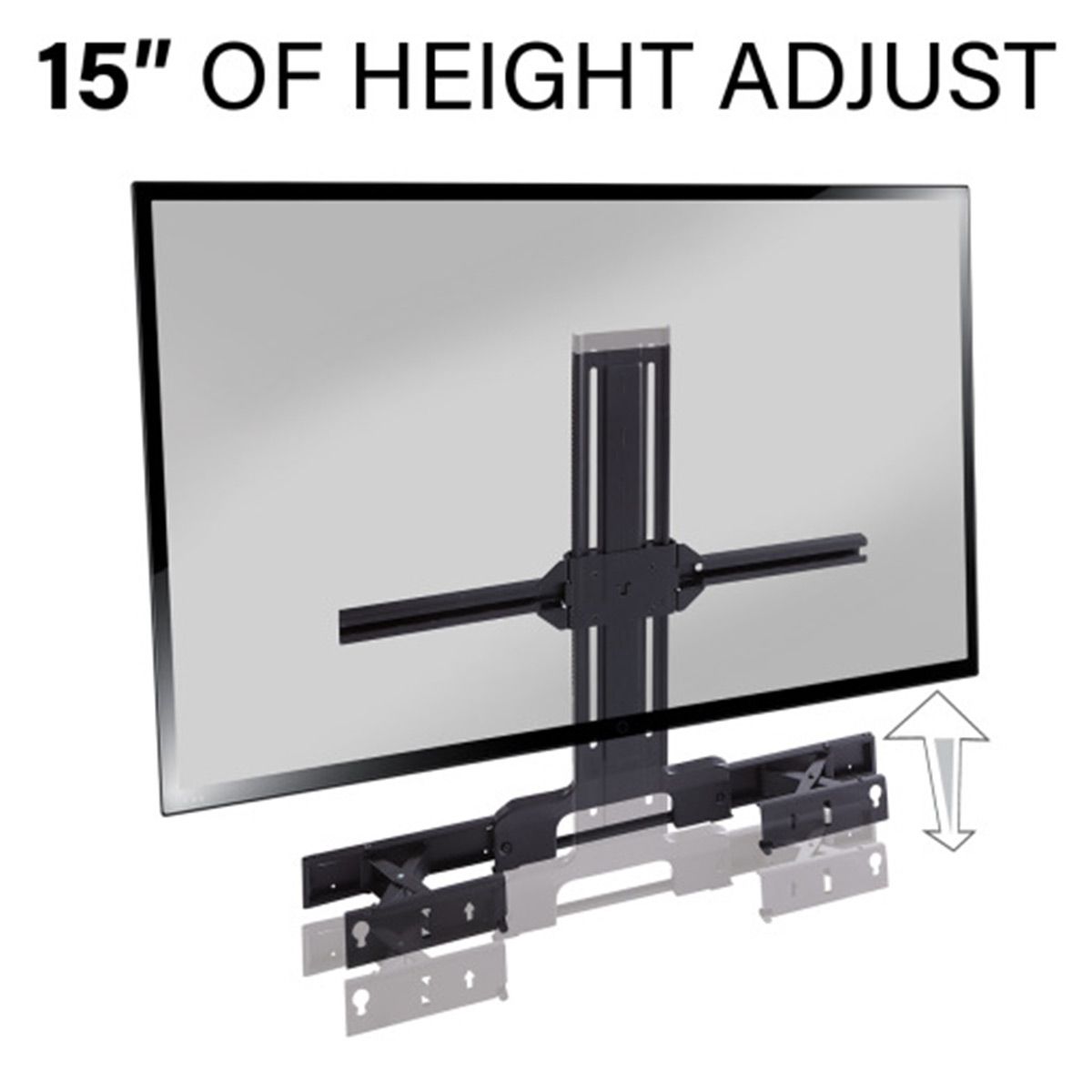 •Up to 15" of height adjust ensures a snug fit under your mounted TV for a clean sleek look