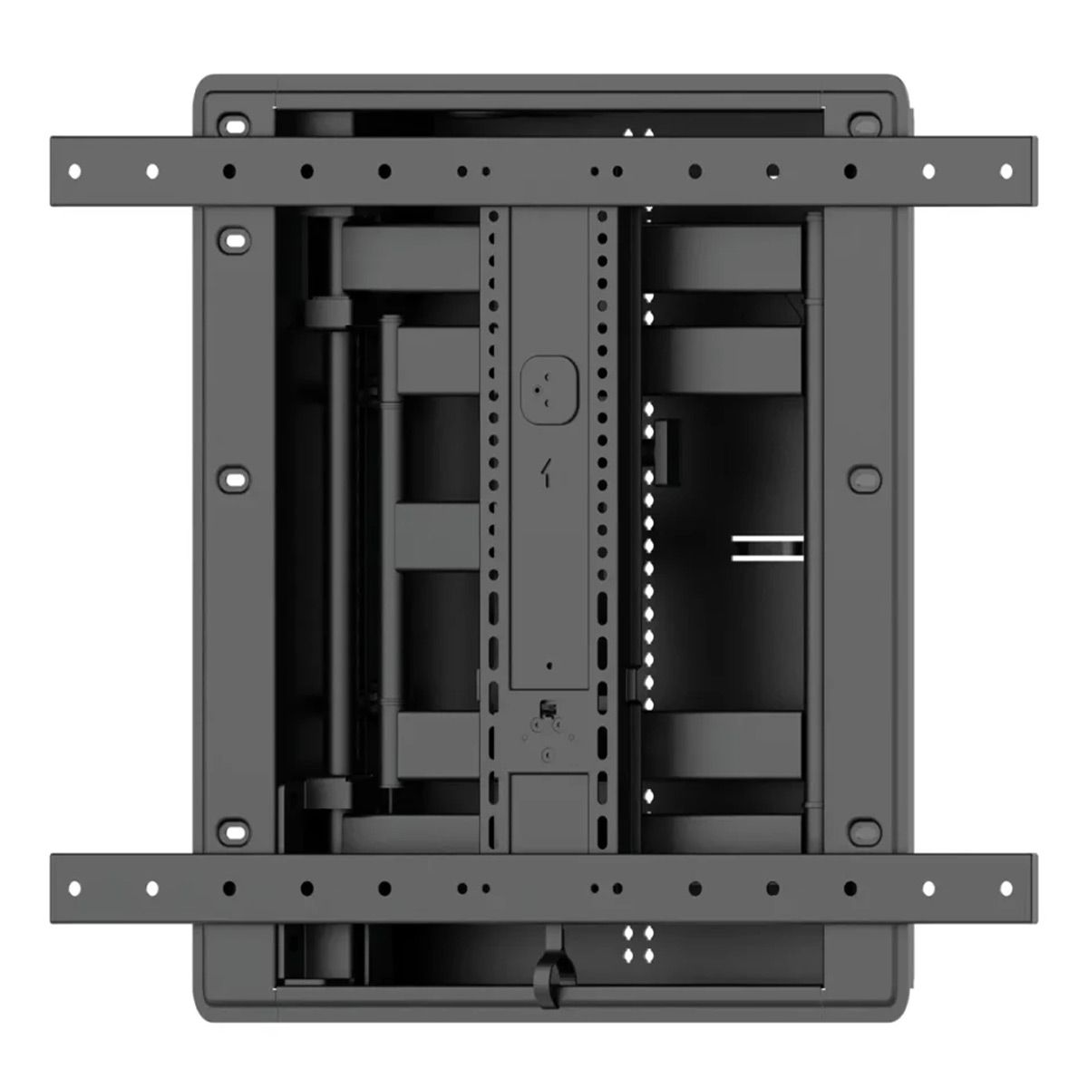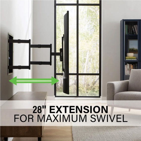 The VIWLF128-B2 Large In-Wall Full Motion mount provides the optimal viewing experience with space for AV components built in. This full motion mount extends 28" with up to 67 of swivel left and right and sits just .5" from the wall when recessed. Mount arms fold into a 20" enclosure that can double as AV storage for streaming devices switches and more. With knockouts to add power (not included) and cable management The VIWLF128 offers a stylish industrial design that achieves the ultimate all-in-one AV experience.