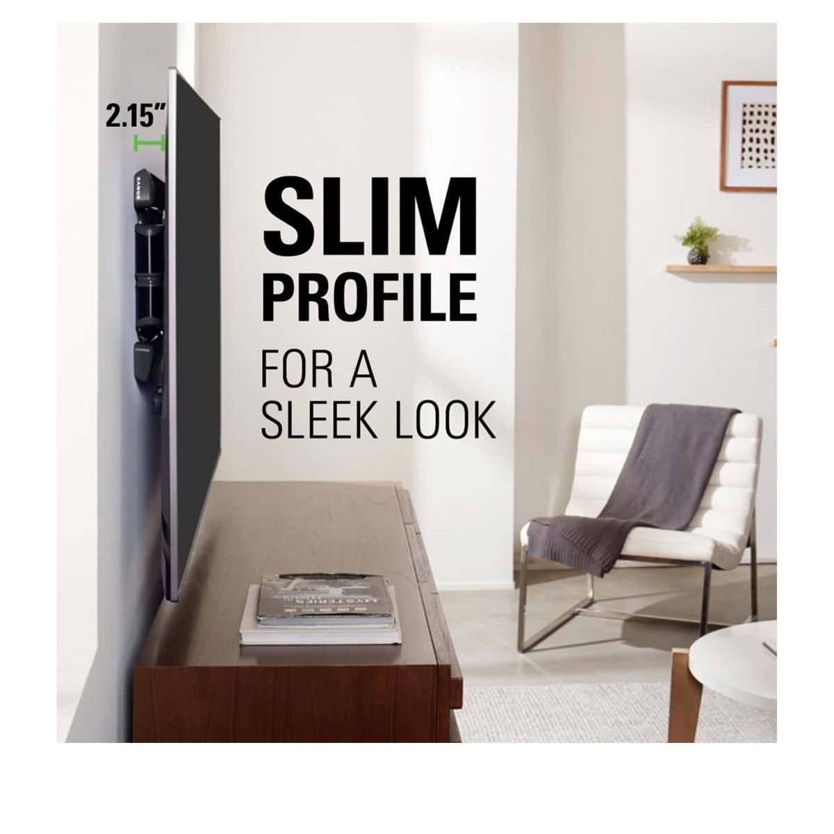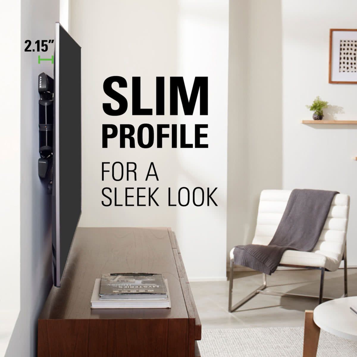 With a lower profile depth than traditional full-motion mounts the Advanced Full-Motion Mount positions TVs closer to the wall creating a more streamlined look.