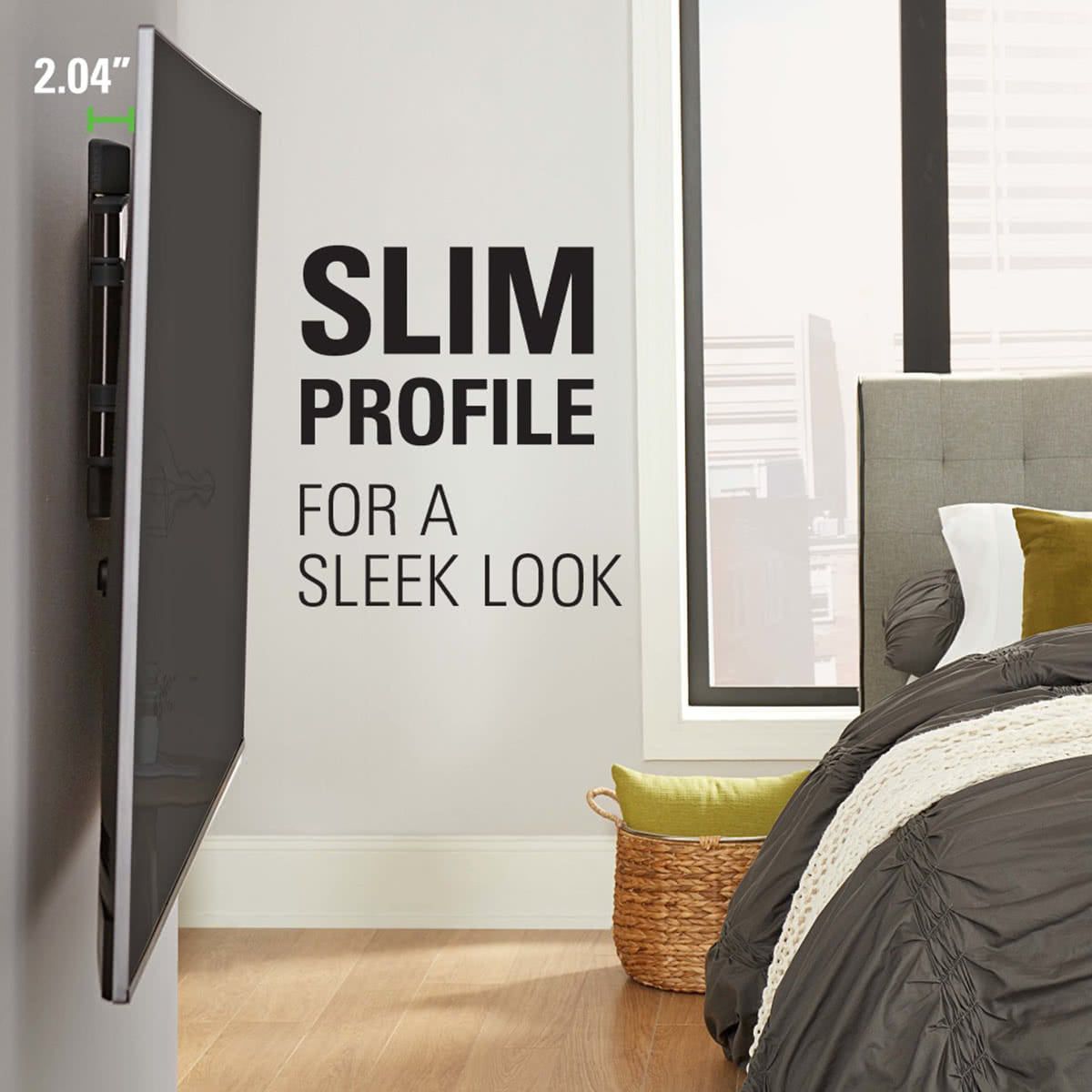 Mounting Depth With a lower profile depth than traditional full-motion mounts the Advanced Full-Motion Mount positions TVs closer to the wall (2.04") creating a more streamlined look.