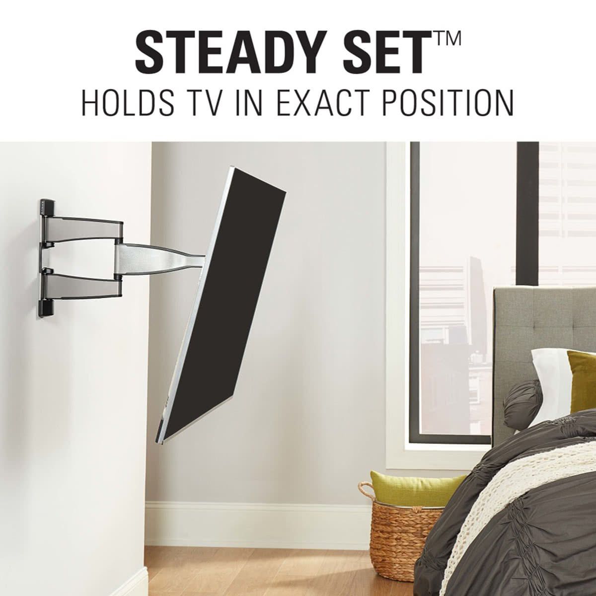Tilt Swivel Expertly engineered with FluidMotion design the Advanced Full-Motion Mount provides unparalleled smoothness. Effortlessly extend tilt and swivel your TV regardless of its weight or thickness. The mounts included Steady Set functionality ensures your TV will stay exactly where you want it no drifting shifting or unwanted movement ever.