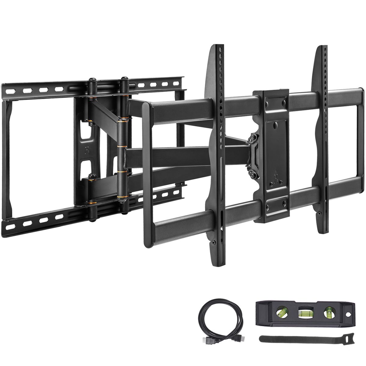 Space-saving Design: Our wall mount TV bracket features four articulated arms, allowing it to be adjusted from 3.5"/9 cm to 22.4"/57 cm away from the wall, saving valuable space in your room. We also provide Velcro for convenient cable management, keeping everything tidy and organized.