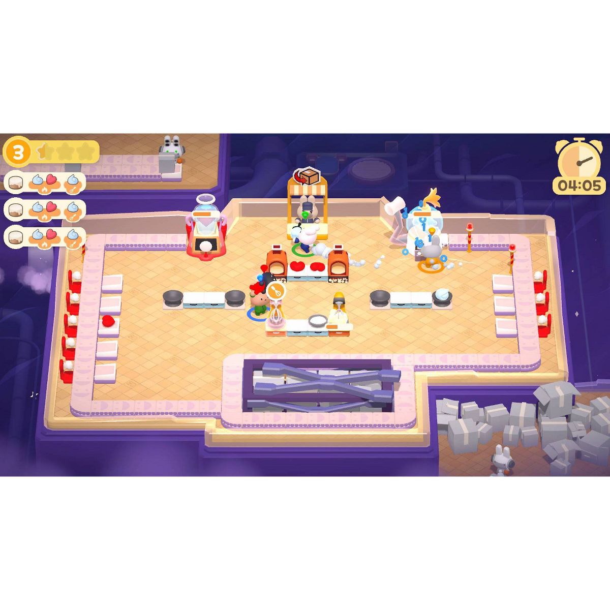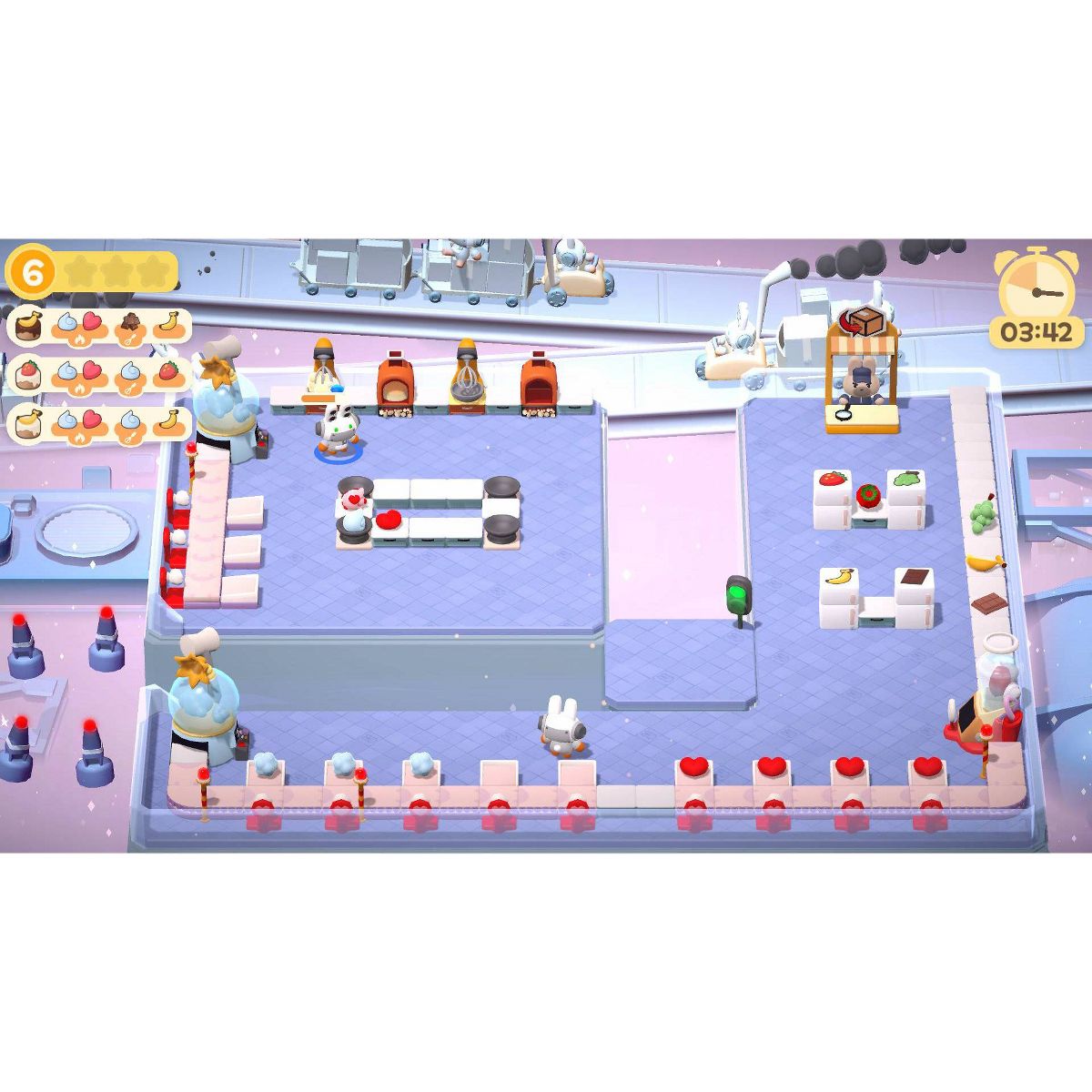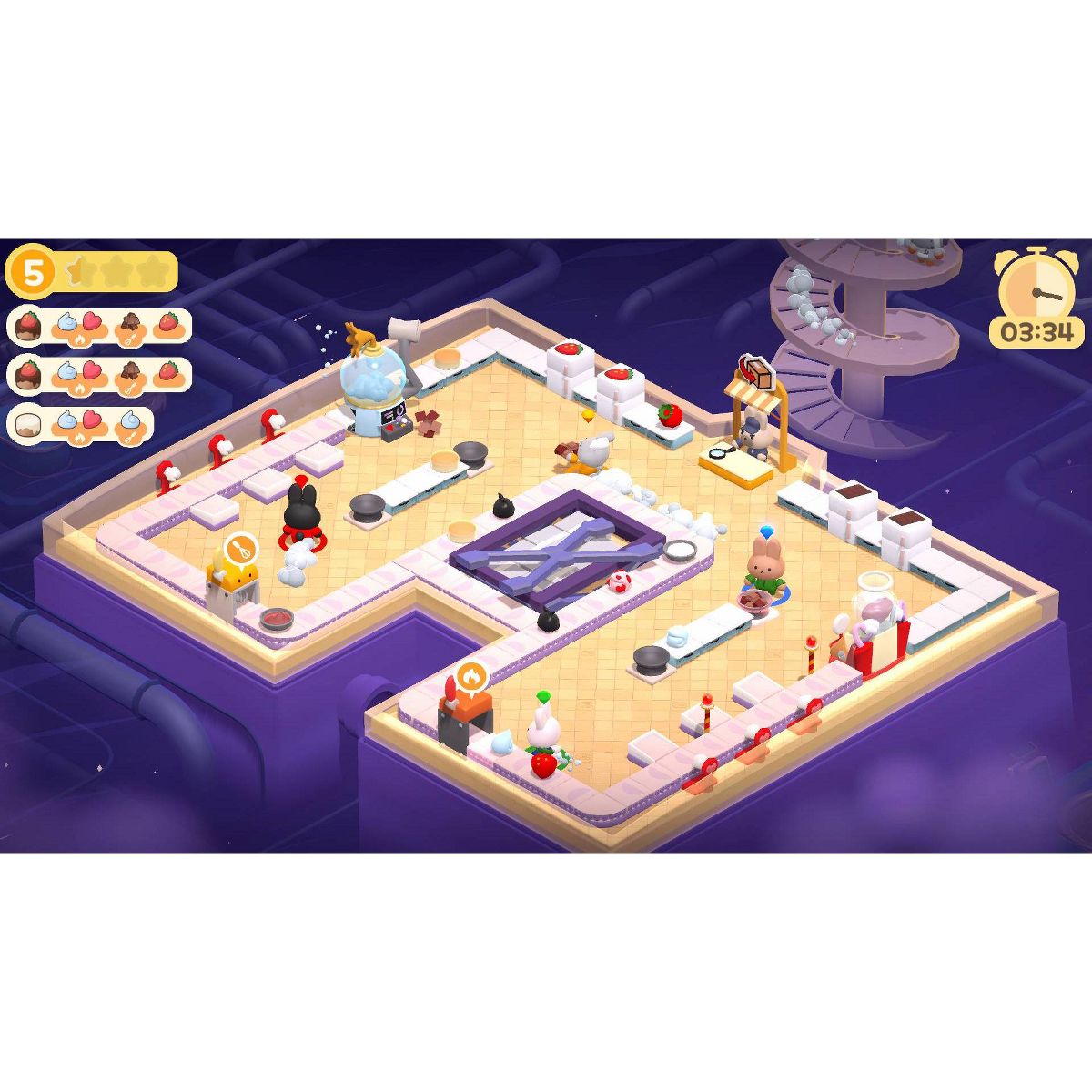 machinery… and whatever else the recipes call for! Hop to it and juggle tasks in a chaotic kitchen, scamper to meet your daily quotas in time and coordinate your team’s efforts to achieve pastry perfection. Just try to avoid slip-ups, and watch the clock—no bunny likes working overtime!