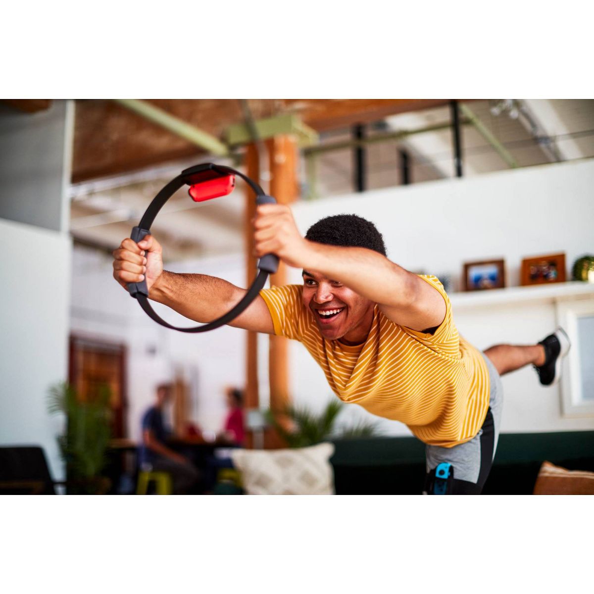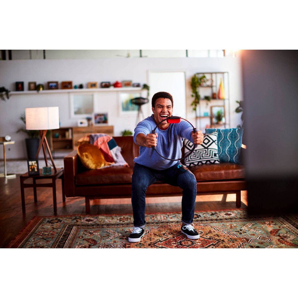 Explore a fantastical adventure world to defeat a bodybuilding dragon and his minions using real-life exercises! Traverse grass-swept plains by jogging in place, attack enemies with overhead shoulder presses, and refill your health meter by striking some yoga poses. Two new accessories, Ring -Con and Leg Strap, measure your real-world actions and help turn them into in-game movements. With additional minigames, Ring Fit Adventure is great escape for players of all skill levels and schedules.